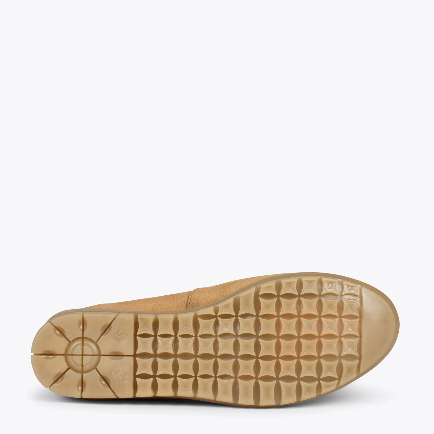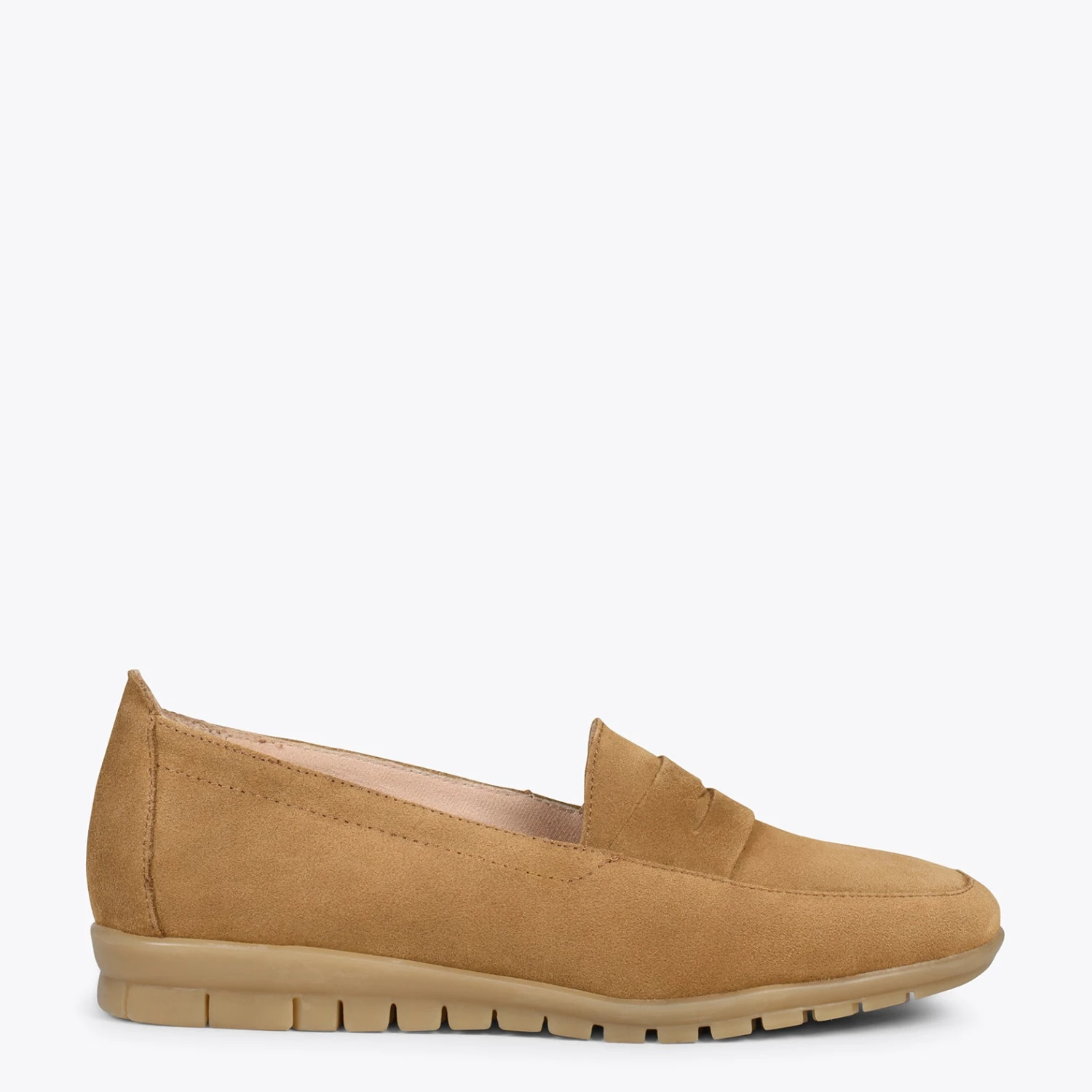 Le compensé interne avec une hauteur de 2,5 cm et la semelle intérieure en cuir qui intègre la technologie Ultra Confort Gel permet d’absorber énormément l’impact de la marche. Grâce au design de la semelle extérieure, ces mocassins sont très confortables et répartissent le poids du corps pendant la marche.