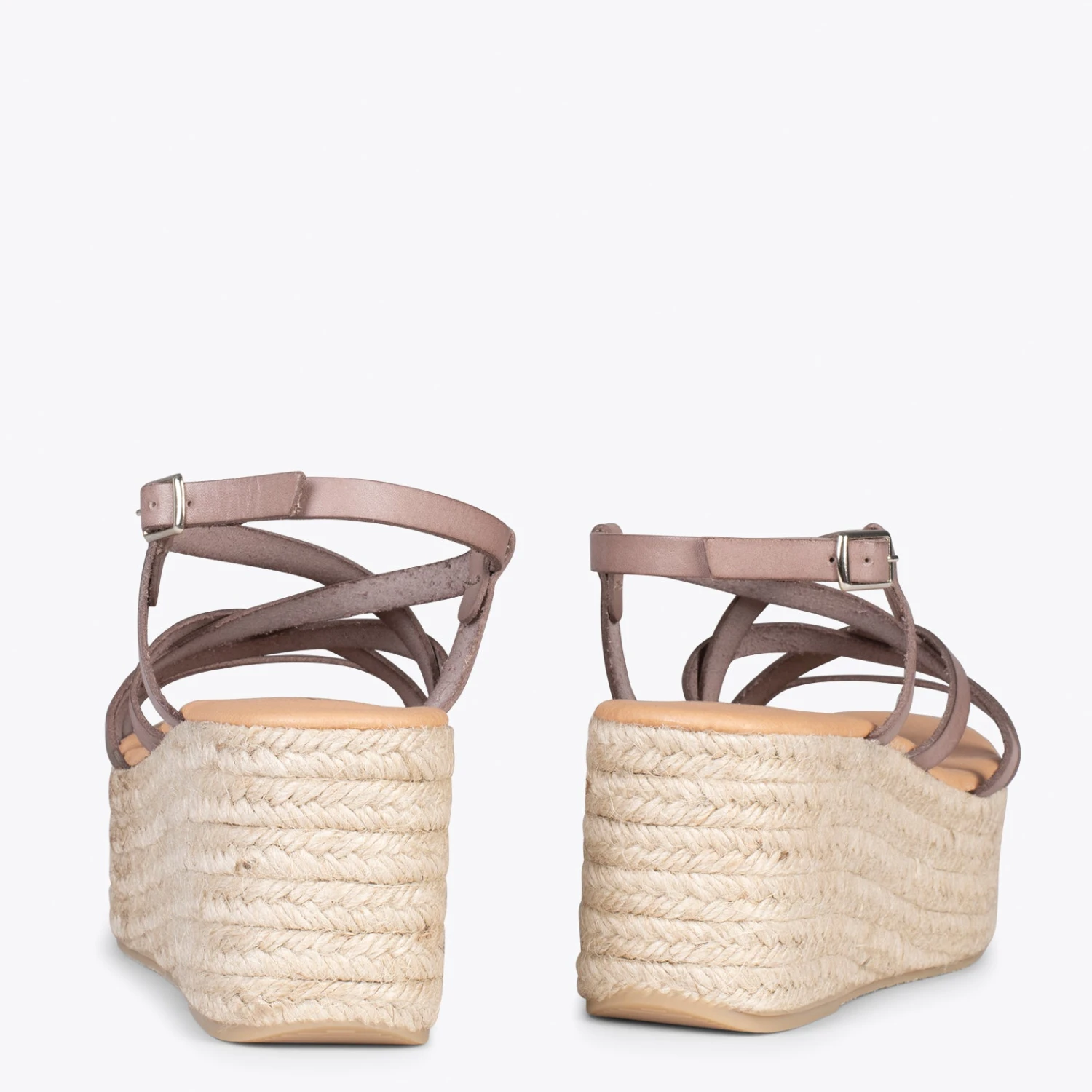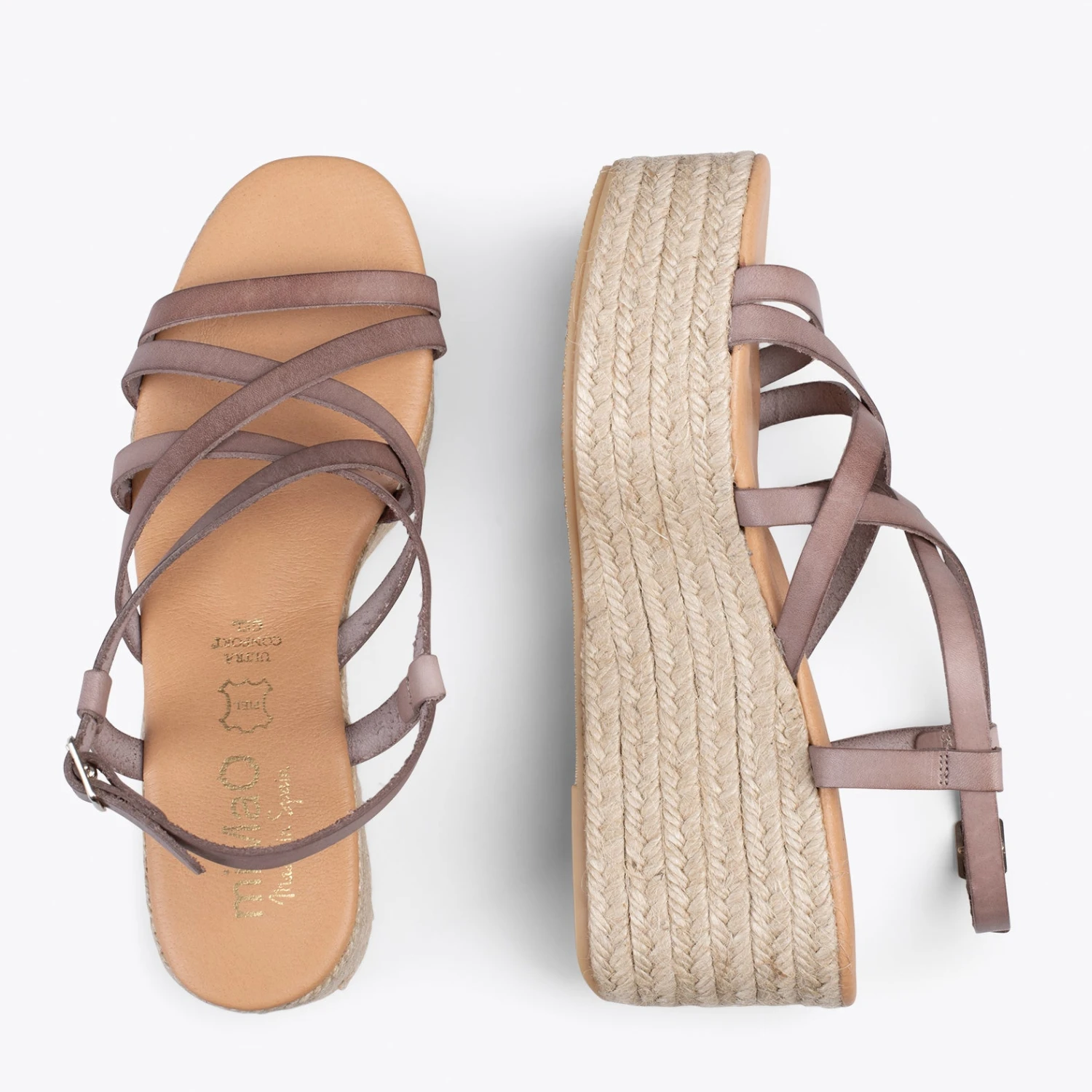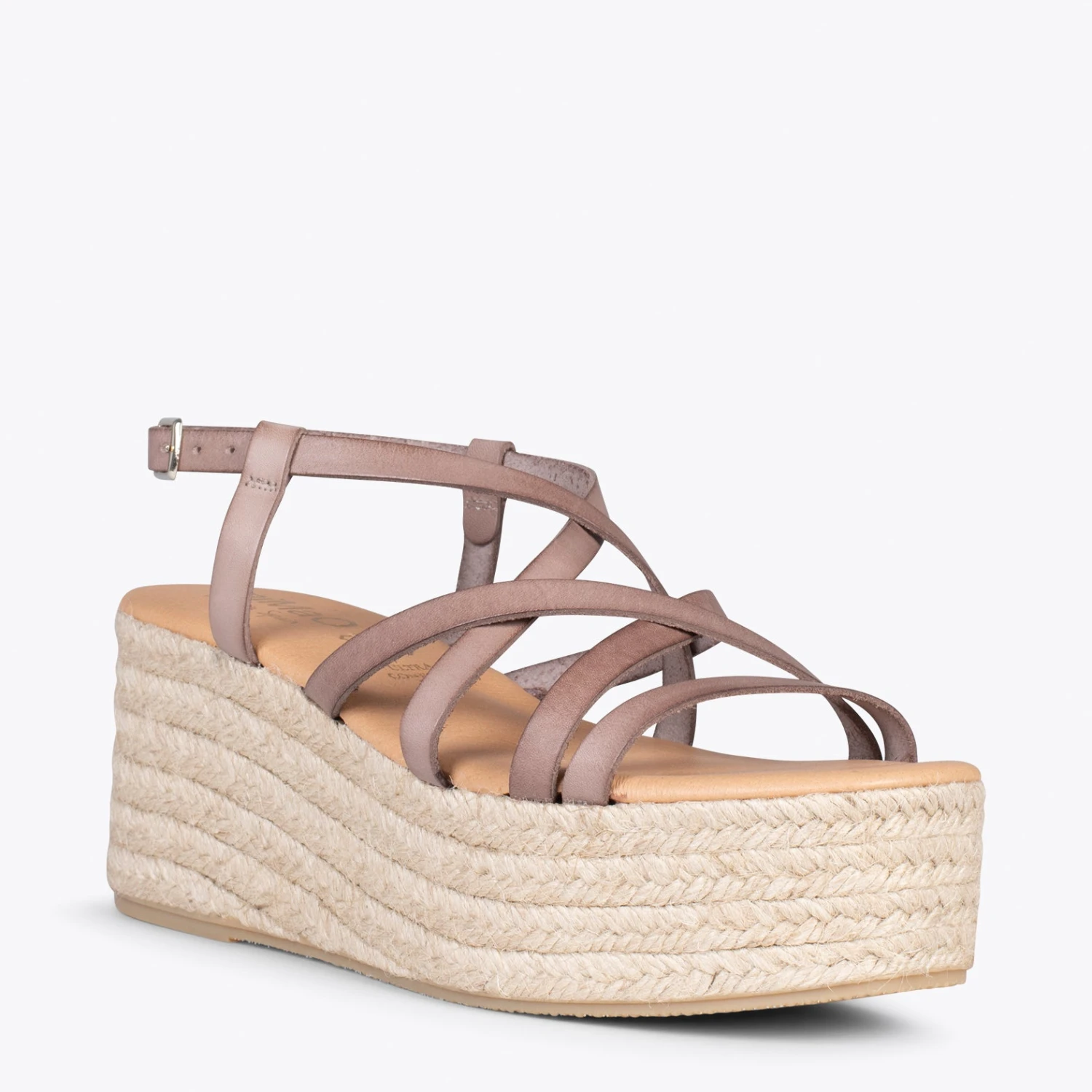 Sandales compensées en jute avec plateforme en couleur TAUPE