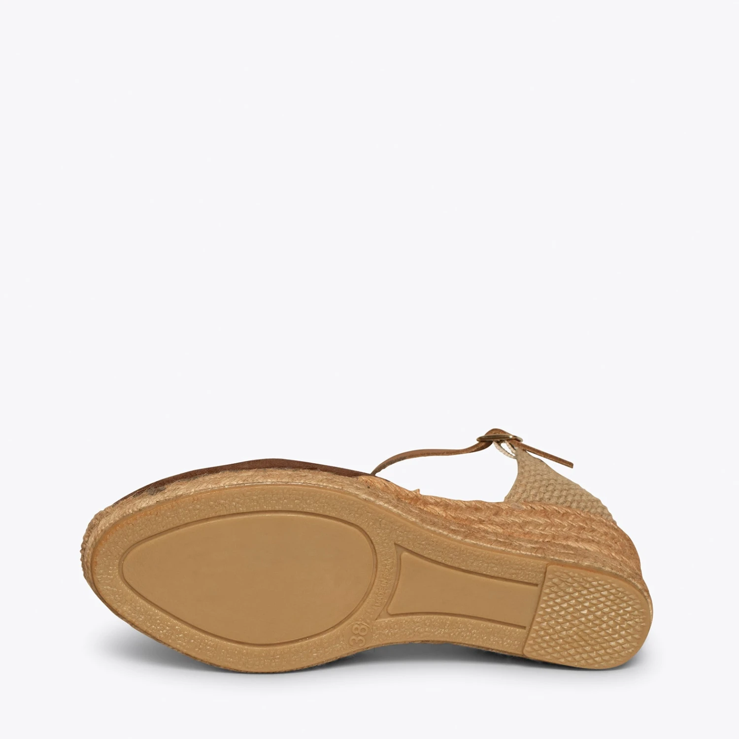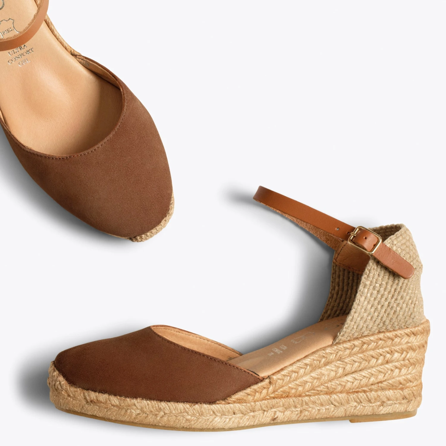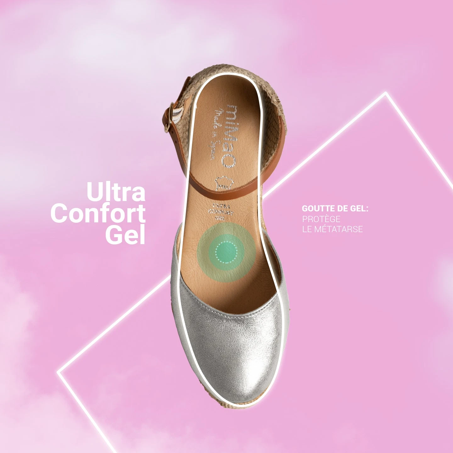 Le modèle de sandales compensées en jute Altea est un best-seller des espadrilles. Elles sont fabriquées en daim de la plus haute qualité. Le jute naturel du talon est de couleur grillé. Ces confortables chaussures compensées vous accompagneront 24 heures sur 24, car grâce à la semelle intérieure en cuir Ultra Confort avec Goute intégrée, elles apporteront tout le repos dont vos pieds ont besoin à chaque pas.