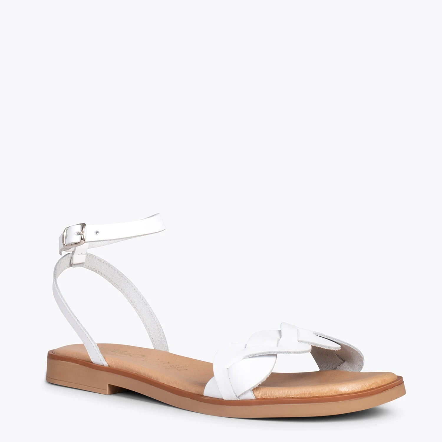 Talon bas d’une hauteur de 2,5 cm et semelle avant de 2 cm, ce qui en fait une sandale plate très confortable et flexible.