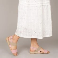 Détail: sangle élastique qui s’adapte au cou-de-pied