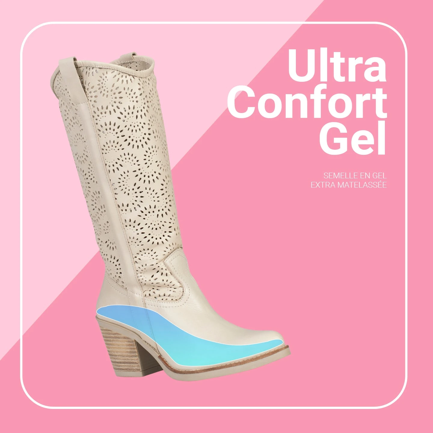 Intérieur très souple et tige flexible pour permettre de les porter froissées. Elles sont dotées d’une semelle avec la technologie Ultra Confort Gel qui amortit le poids de notre corps à chacun de nos pas. Elles comptent avec une fermeture éclair sur le côté pour être facilement chaussées.