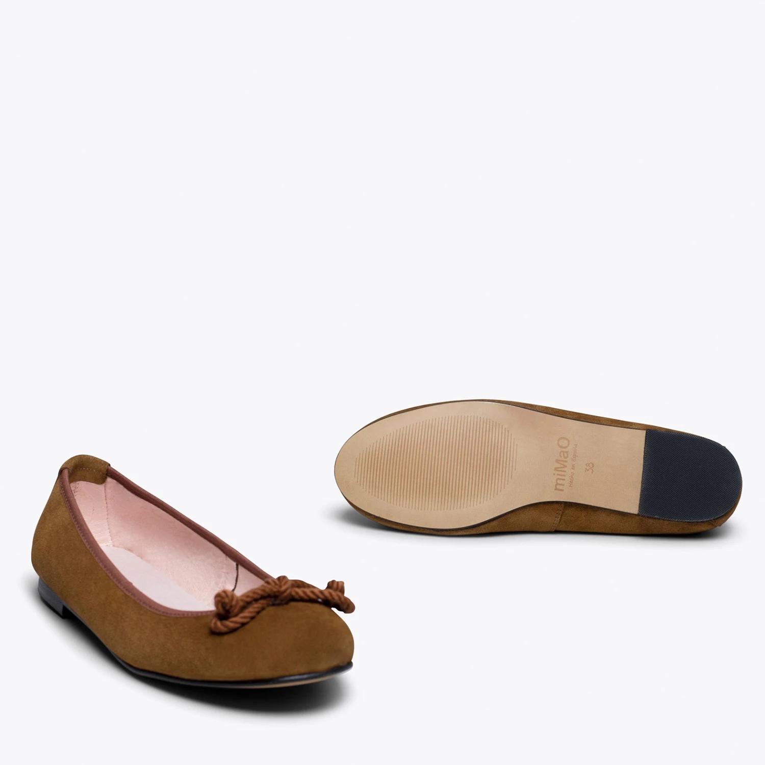 Ballerine en cuir nubuck CAMEL pour femme Ă lacets dĂ©coratifs sur le dessus. Cette ballerine en cuir nubuck a un bout arrondi et un mini talon de 1 cm. Elle sera votre chaussure CAMEL idĂ©ale pour le quotidien grâce au confort de la semelle intĂ©rieure en cuir Ultra Confort Gel et de sa souplesse. Ballerine parfaite pour aller au travail ou pour vos loisirs. Cette ballerine plate CAMEL est disponible en plusieurs coloris tendance cette saison automne – hiver 2020-21. Choisissez la vĂ´tre!