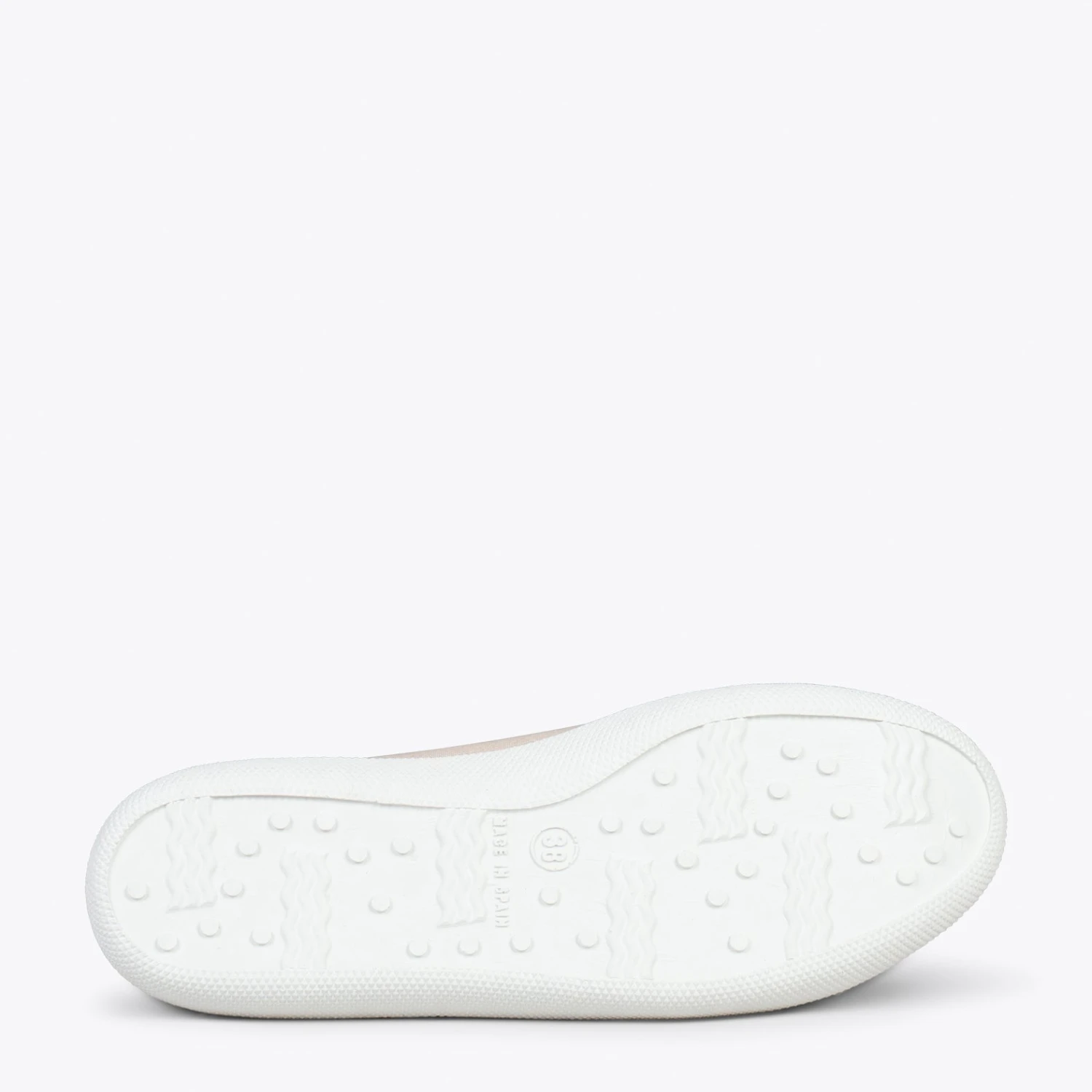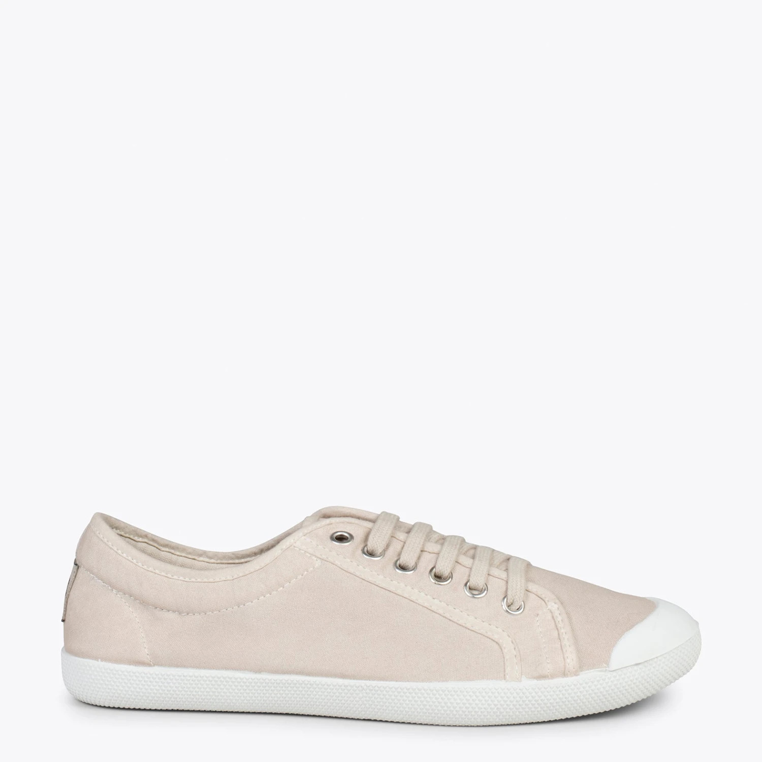 Tennis écologiques fabriqués en coton teinté de manière naturelle de couleur BEIGE, parfaits pour associer à vos looks décontractés du Printemps-Été 2023.