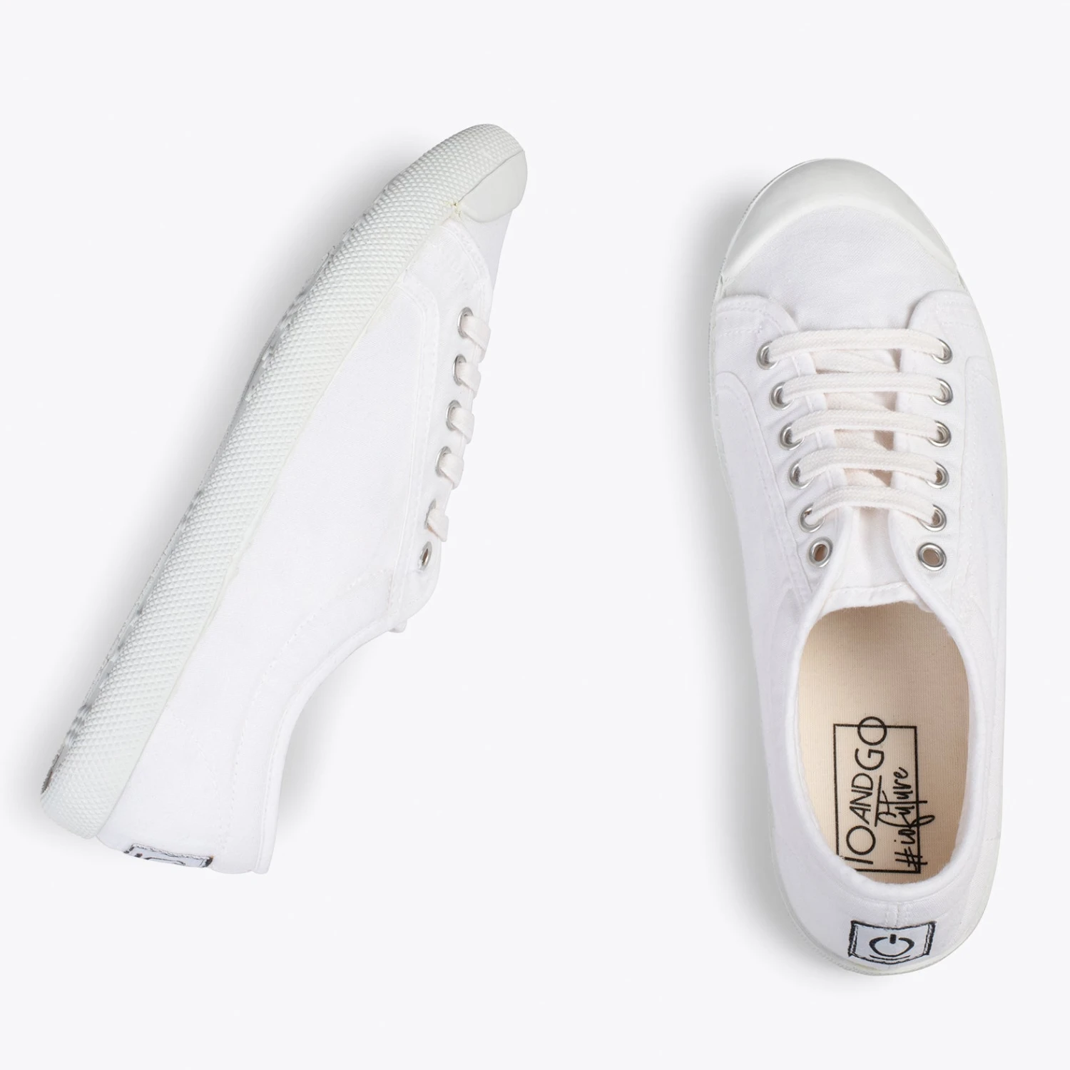 Tennis écologiques fabriqués en coton teinté de manière naturelle de couleur BLANC, parfaits pour associer à vos looks décontractés du Printemps-Été 2023.