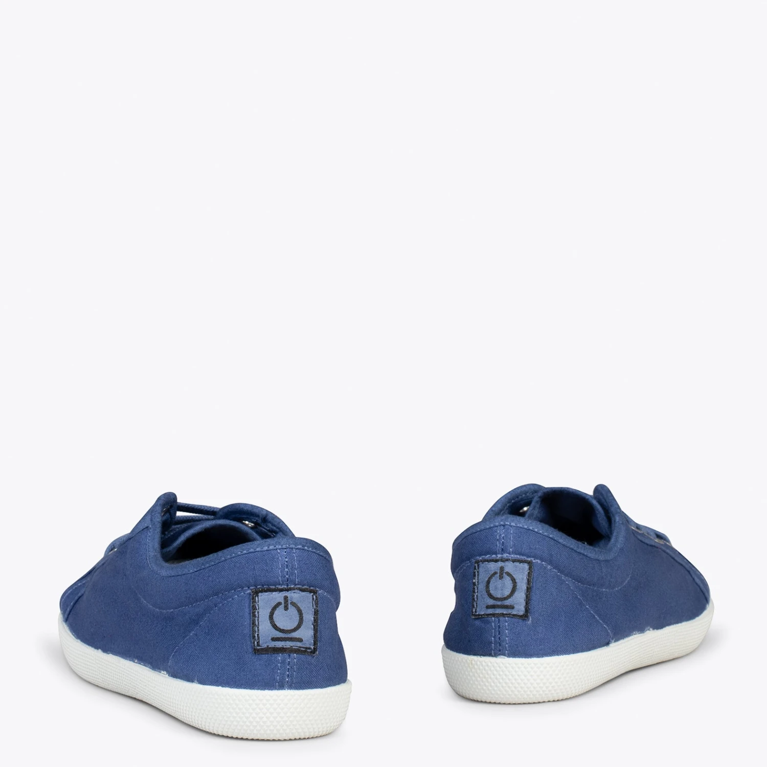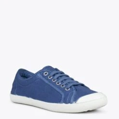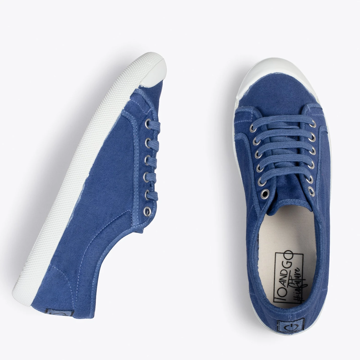 Tennis écologiques fabriqués en coton teinté de manière naturelle de couleur BLEU MARINE, parfaits pour associer à vos looks décontractés du Printemps-Été 2023.