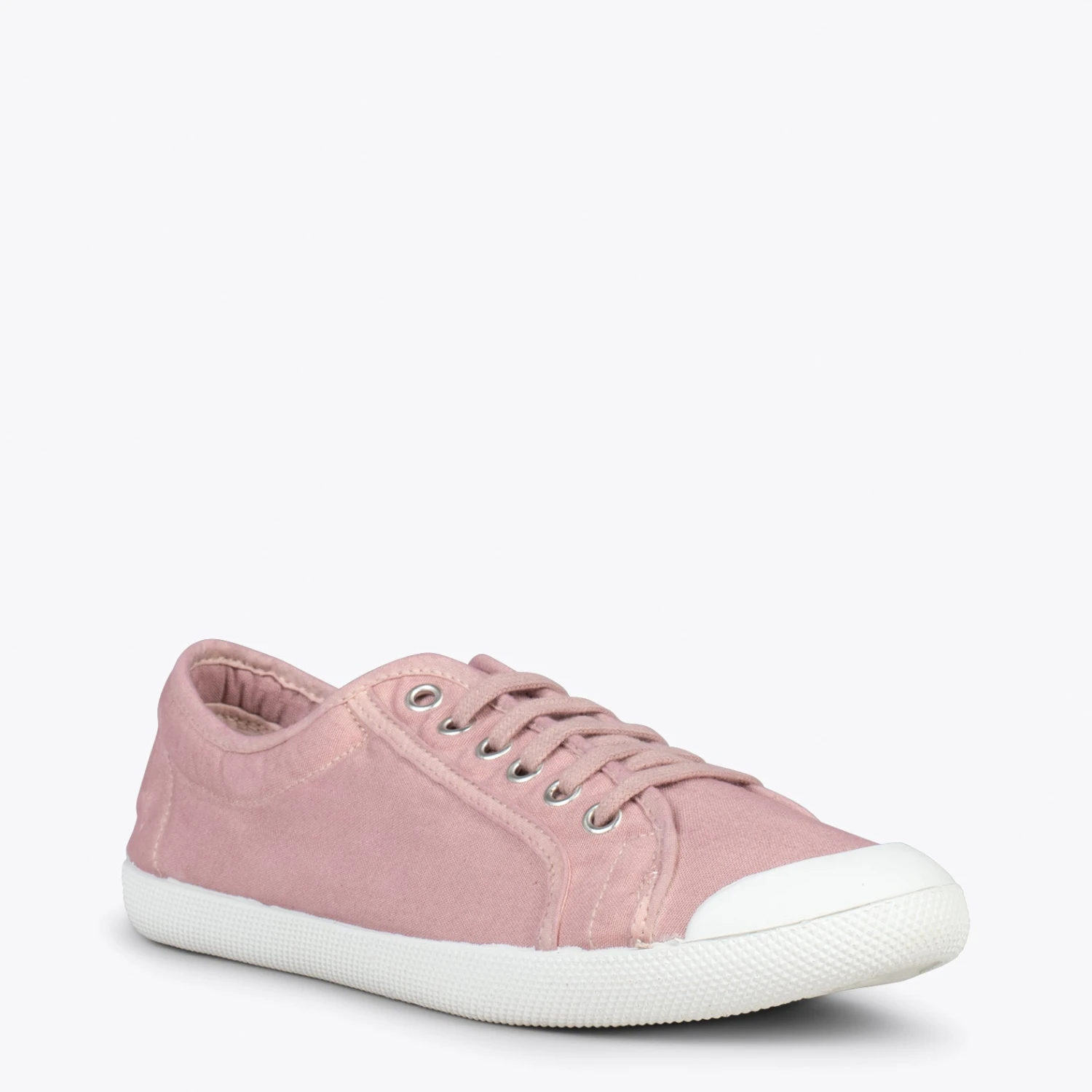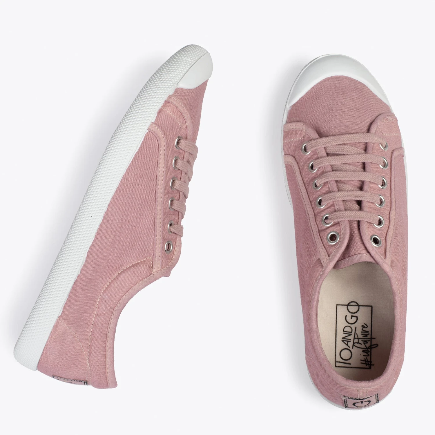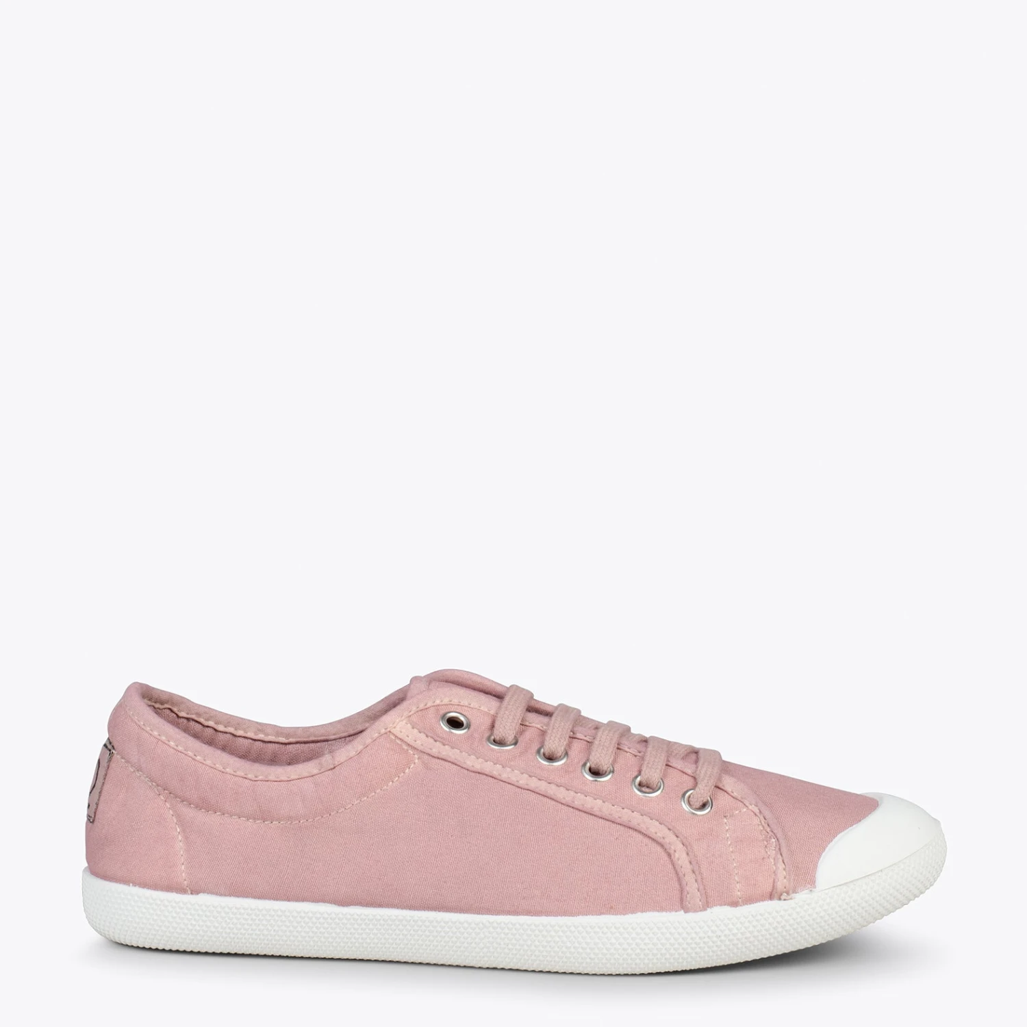 Tennis écologiques fabriqués en coton teinté de manière naturelle de couleur NUDE, parfaits pour associer à vos looks décontractés du Printemps-Été 2023.