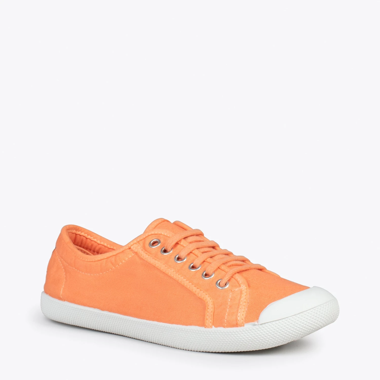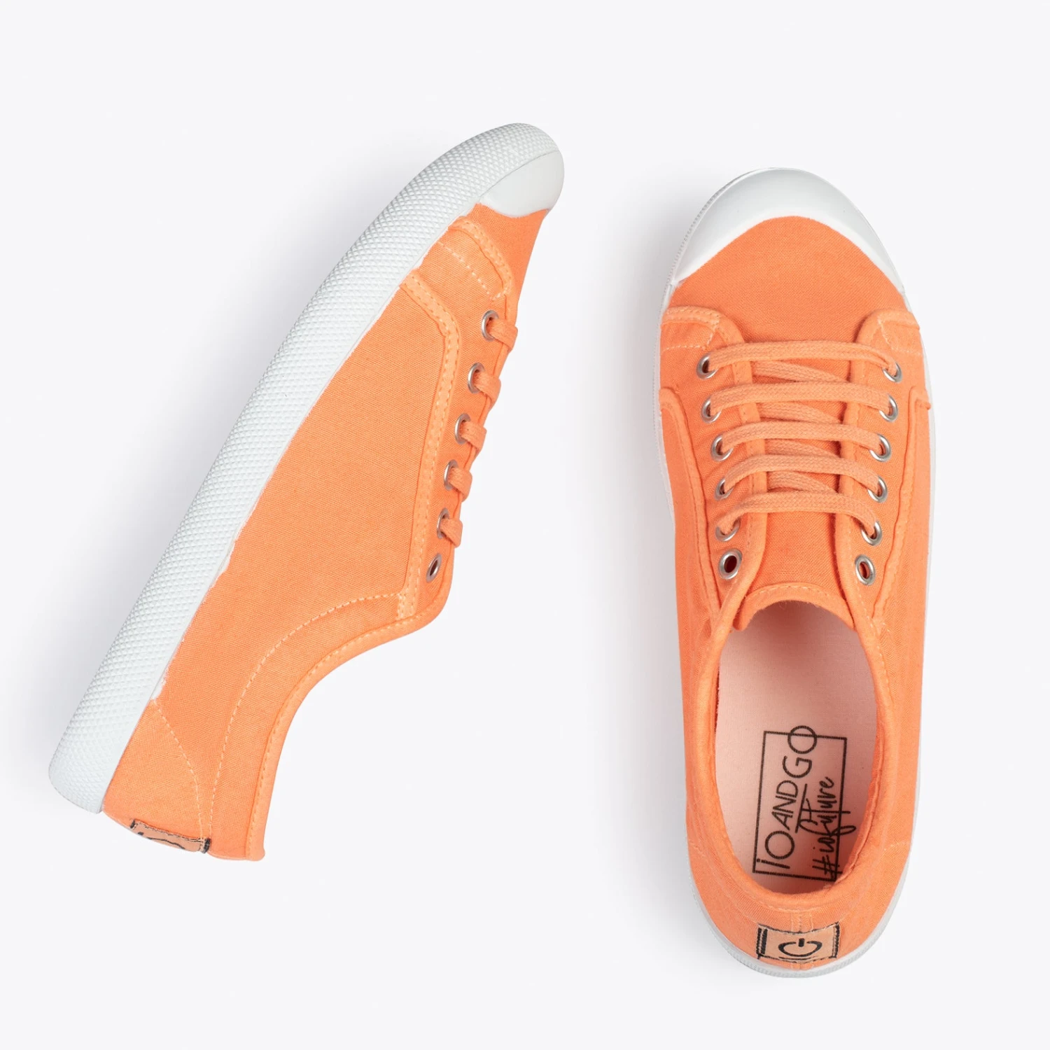 Tennis écologiques fabriqués en coton teinté de manière naturelle de couleur ORANGE, parfaits pour associer à vos looks décontractés du Printemps-Été 2023.
