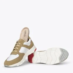 Matériau extérieur de la basket: nubuck BEIGE et textile en maille respirante BLANC