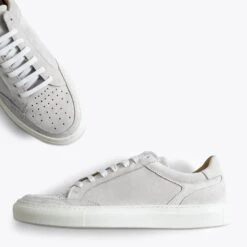 Matériau extérieur de la basket: nubuck GRIS et textile en maille respirante GRIS CLAIR