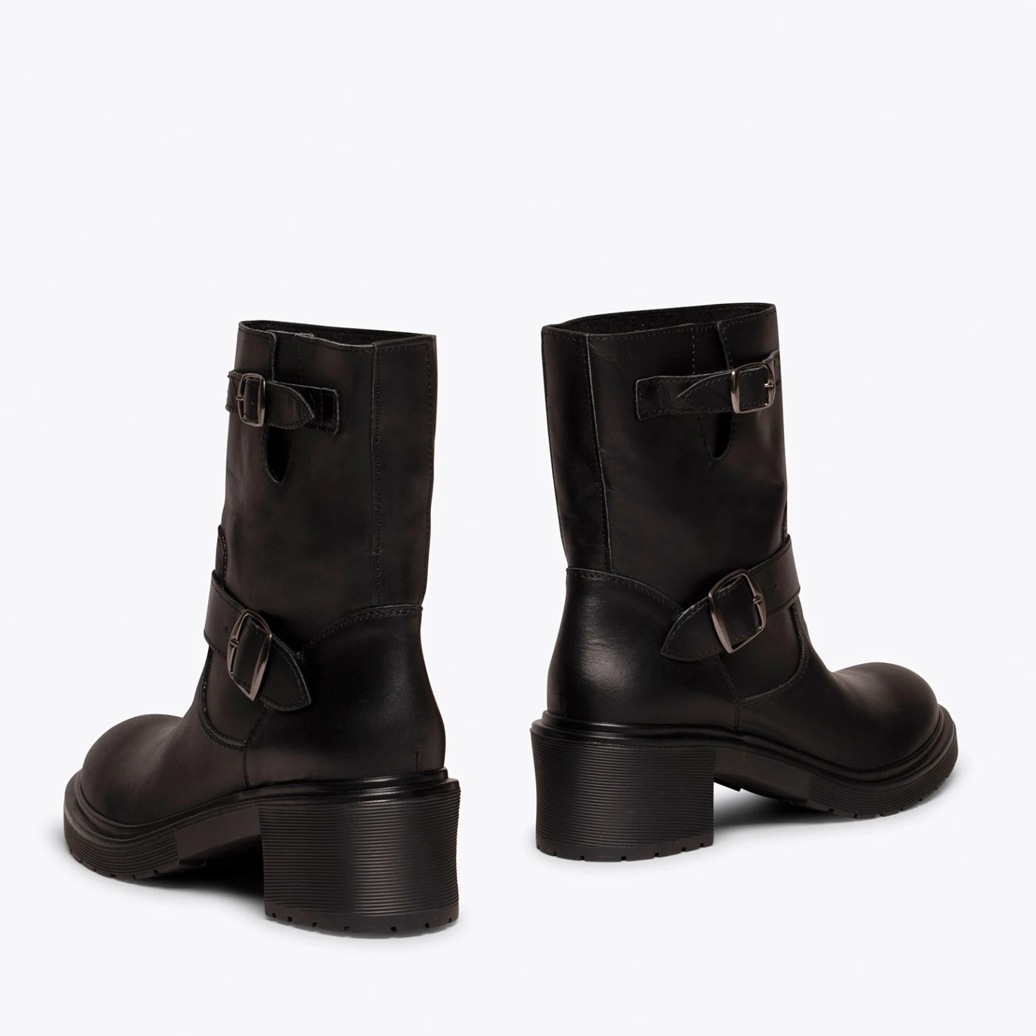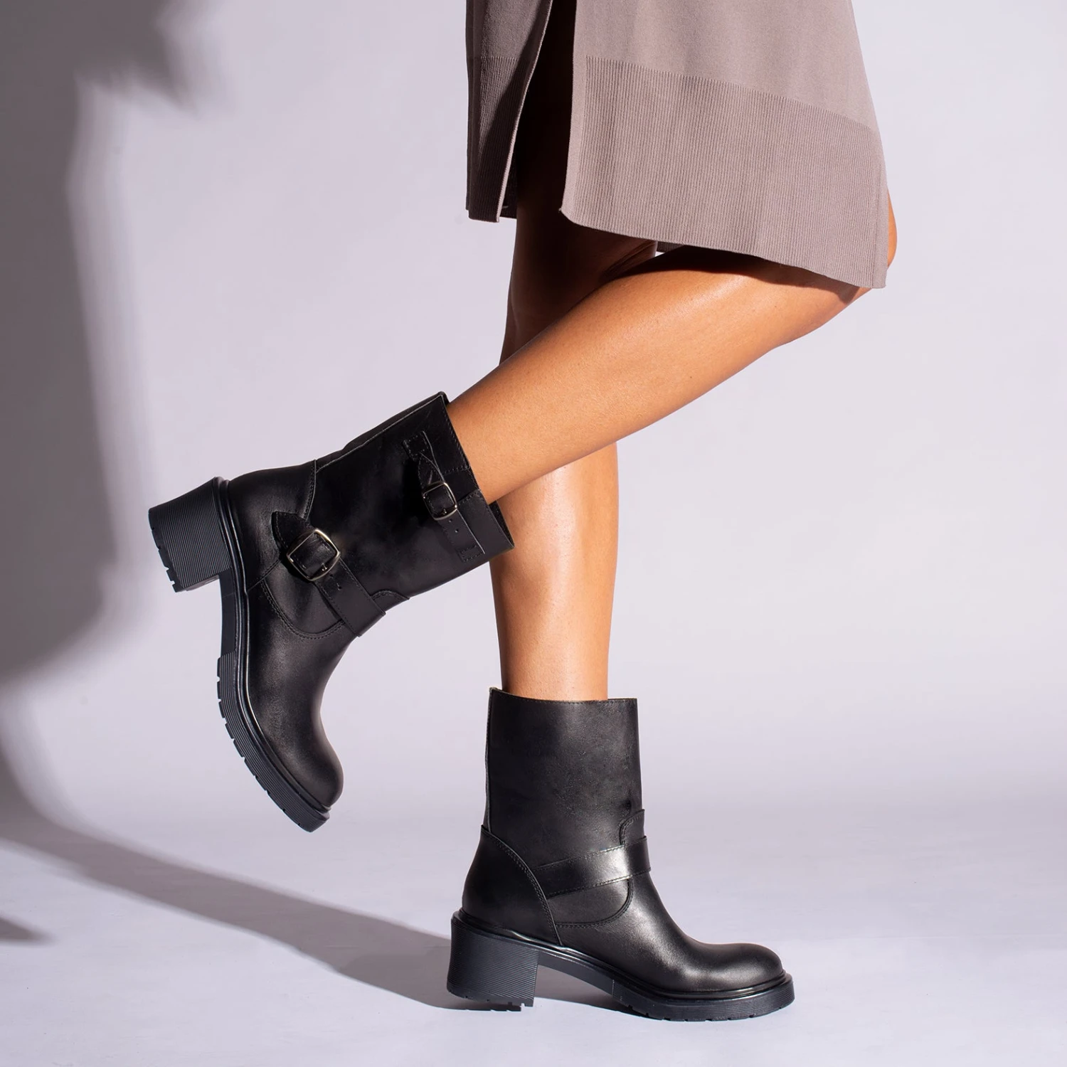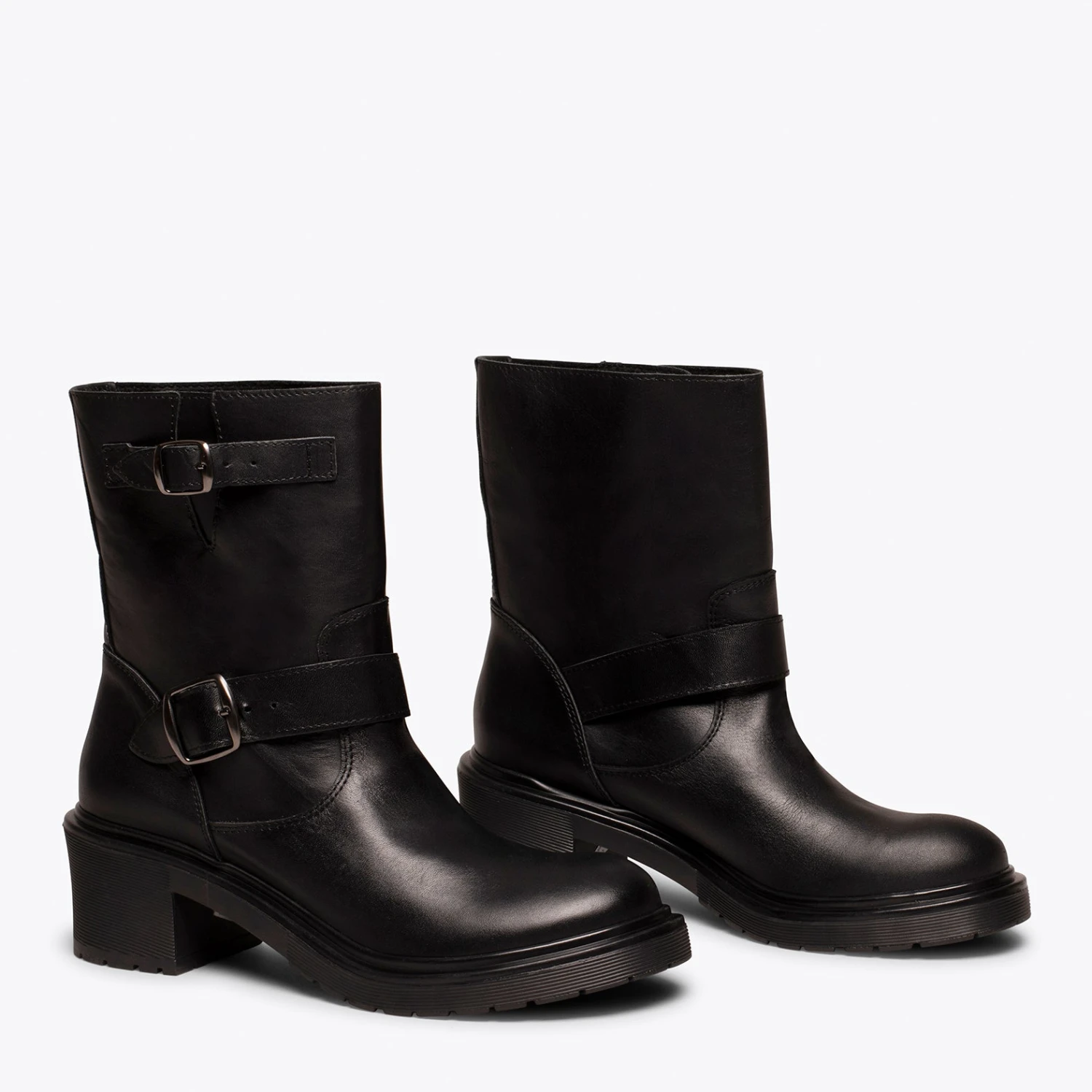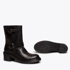 Les bottes de motard sont très tendance cette saison, elles sont donc un incontournable de votre garde-robe! Vous allez adorer cette bottine haute NOIR dès que vous l’aurez entre les mains. Sa semelle intérieure en gel ultra-confort vous fera sentir très légère et le talon moyen de 5,5 cm vous donnera suffisamment de hauteur. Et que dire de son design original avec deux boucles? La seule question que vous pourriez vous poser est: quelle couleur vais-je choisir? Elles sont toutes si combinables…
