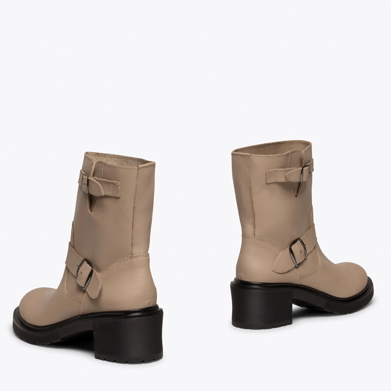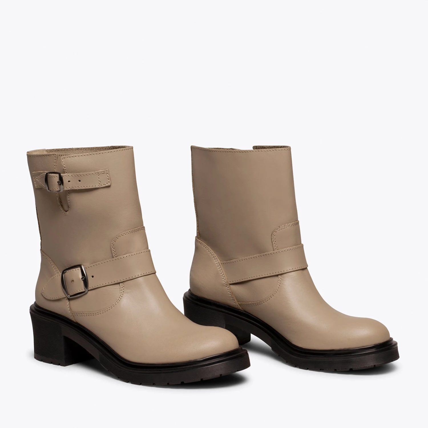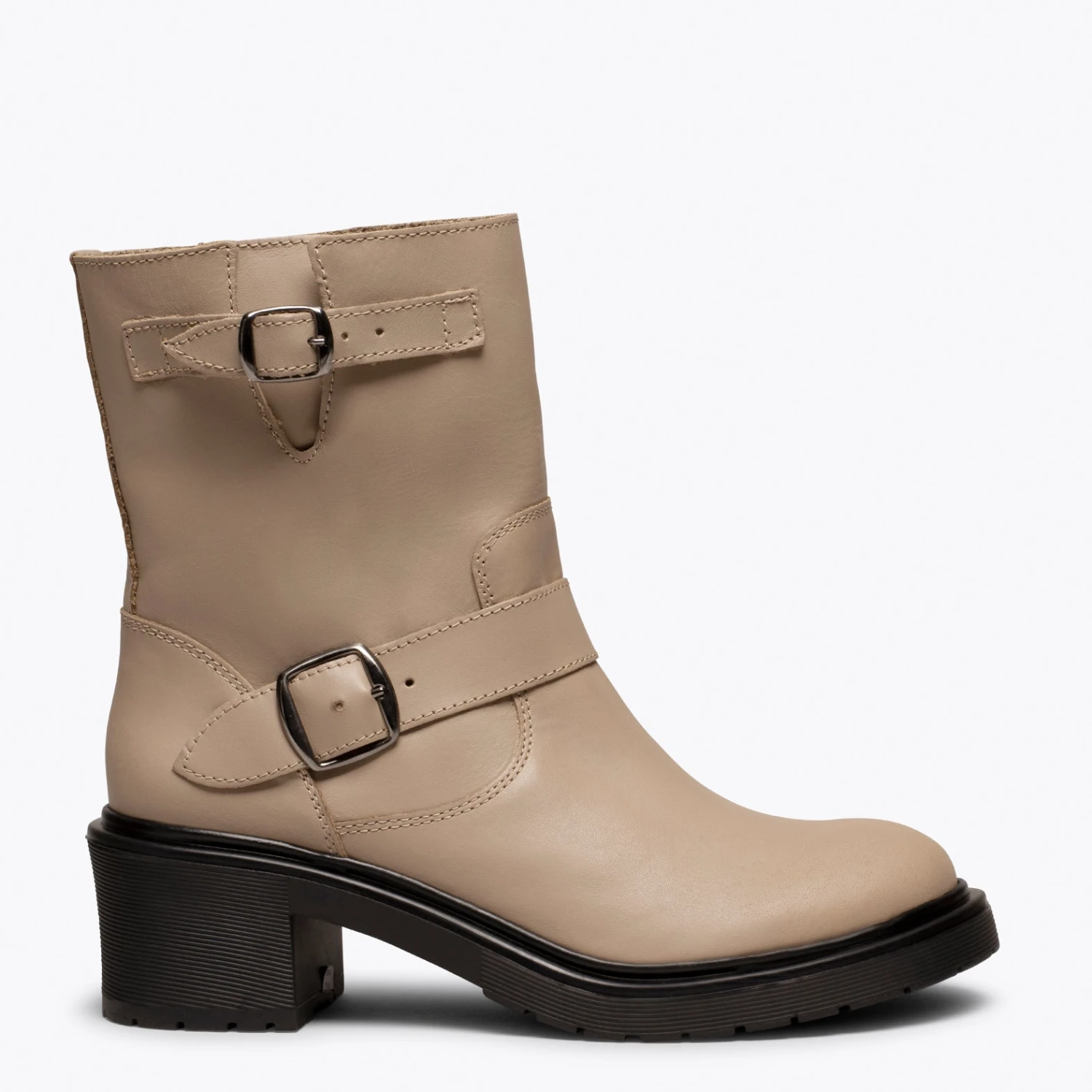 Les bottes de motard sont très tendance cette saison, elles sont donc un incontournable de votre garde-robe! Vous allez adorer cette bottine haute NUDE dès que vous l’aurez entre les mains. Sa semelle intĂ©rieure en gel ultra-confort vous fera sentir très lĂ©gère et le talon moyen de 5,5 cm vous donnera suffisamment de hauteur. Et que dire de son design original avec deux boucles? La seule question que vous pourriez vous poser est: quelle couleur vais-je choisir? Elles sont toutes si combinables…