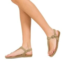 SANDALE PLATE À DOIGT BIO EN BEIGE POUR FEMME AVEC SEMELLE DE 2 CM, ULTRA FLEXIBLE ET LÉGÈRE, AVEC BRIDE EN FORME TRIANGULAIRE ET FERMETURE BRACELET À BOUCLE. SANDALES CONFORTABLES BEIGE EN NUBUCK AVEC SEMELLE INTÉRIEURE CONFORT GEL EN CUIR ET SEMELLE EXTÉRIEURE ANTIDÉRAPANTE. ESSAYEZ LA QUALITÉ DE CETTE CHAUSSURE FABRIQUÉE EN ESPAGNE. COMMANDEZ VOS CHAUSSURES EN LIGNE CONFORTABLES ET COMBINEZ MODE ET CONFORT.