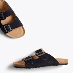Sandales pour homme BLEU MARINE en cuir nubuck avec semelle extĂ©riere en liège. Ce sont des sandales bio Ă double boucle et une ouverture au centre de celle-ci. Ces sandales plates pour homme ont la semelle intĂ©rieure en cuir Bio Ultra Confort Gel incorporĂ©e, vous pouvez marcher pendant des heures avec elles. Sandales en cuir pour homme Printemps EtĂ© 2021 Choisissez la qualitĂ© d’une chaussure pour homme Made in Spain. Nous vous proposons confort, couleur et mode avec chacune de nos chaussures homme. Vous pouvez maintenant acheter des chaussures homme printemps Ă©tĂ© en ligne sur miMaO Vous allez les adorer!