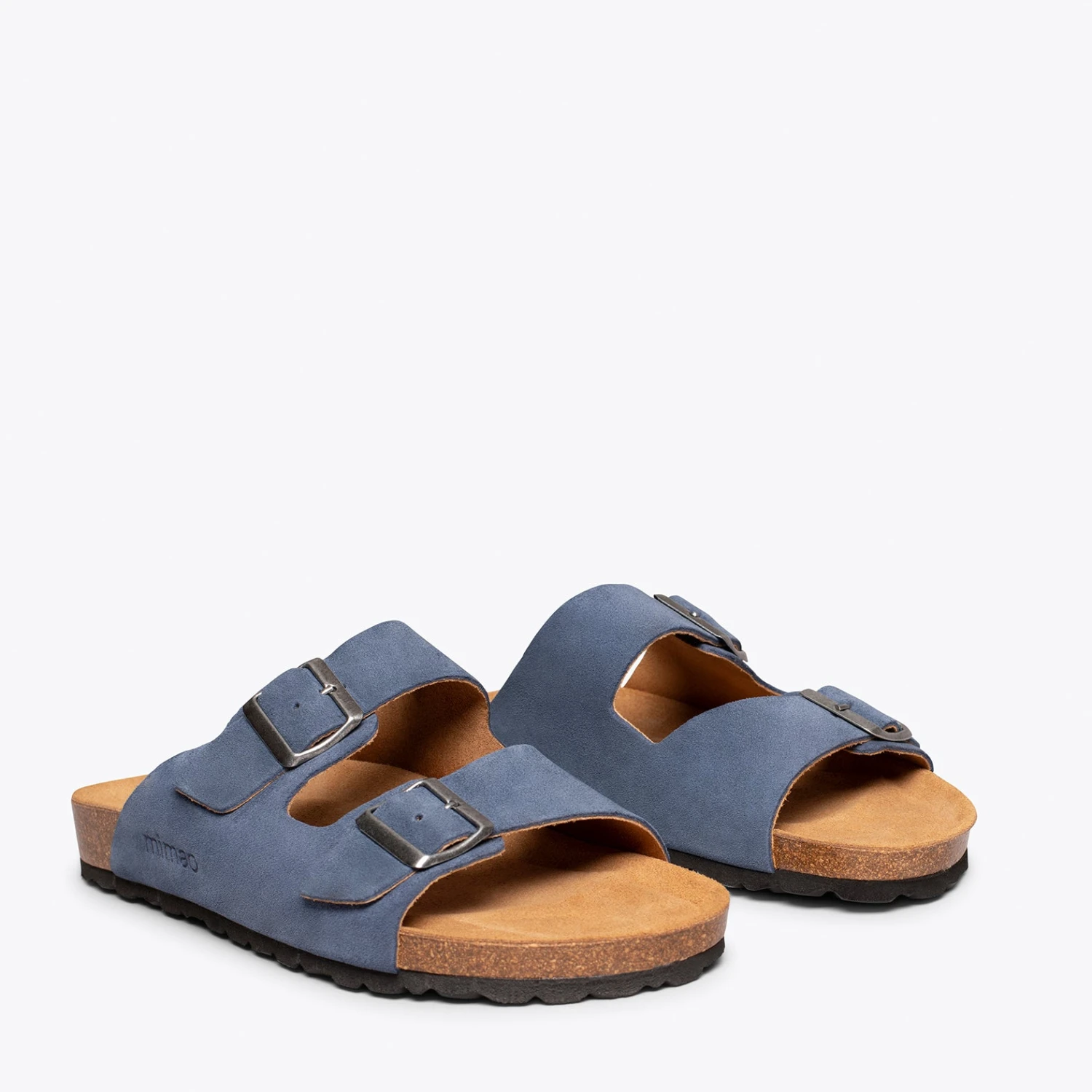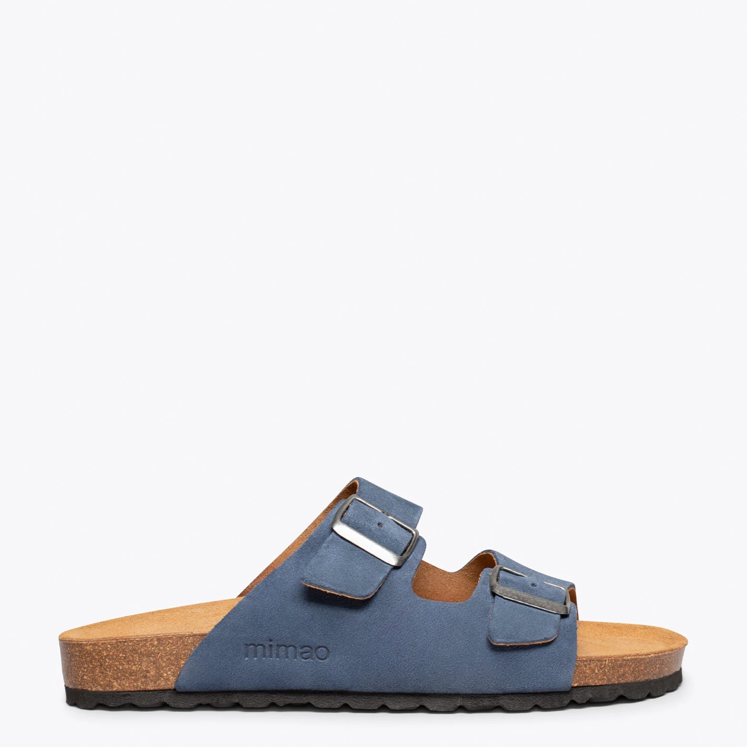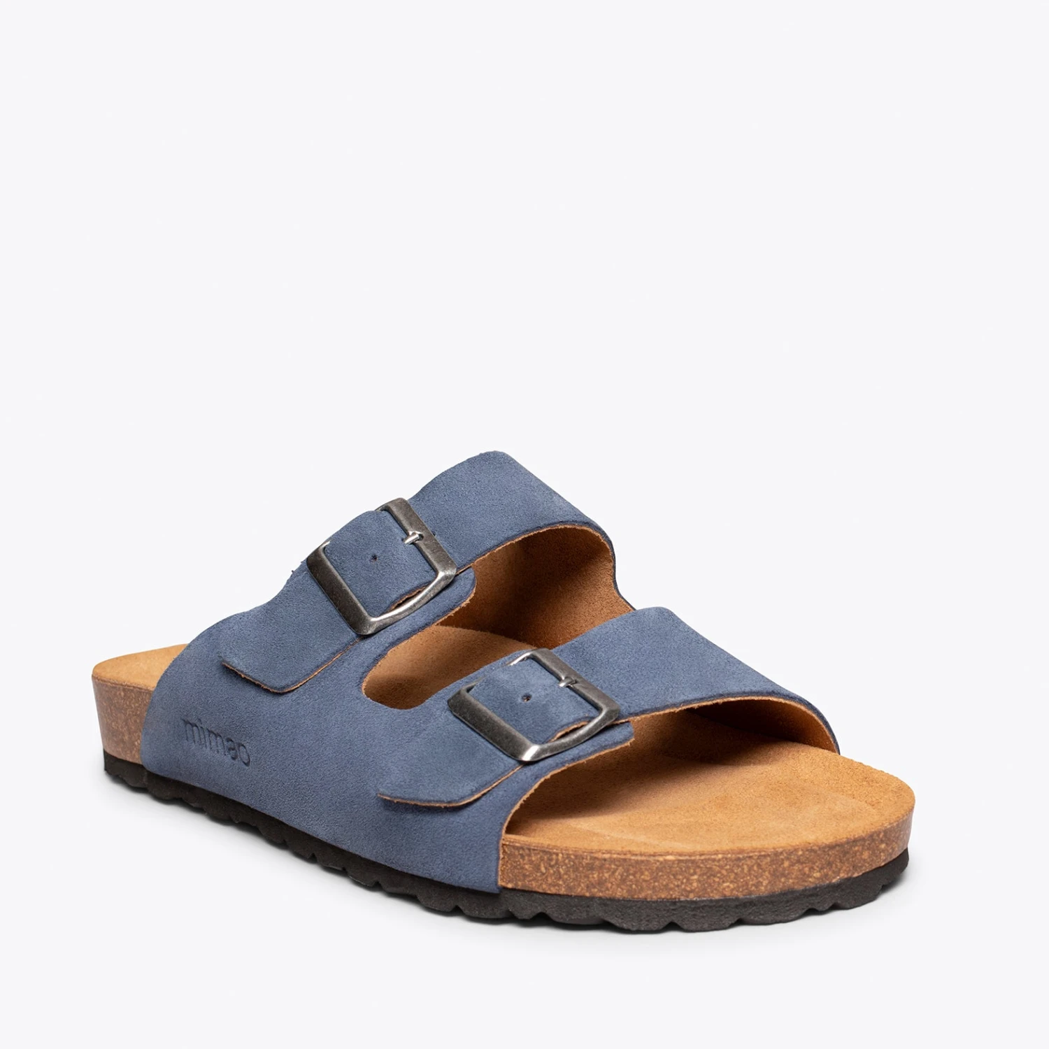 Sandales pour homme BLEU en cuir nubuck avec semelle extĂ©riere en liège. Ce sont des sandales bio Ă double boucle et une ouverture au centre de celle-ci. Ces sandales plates pour homme ont la semelle intĂ©rieure en cuir Bio Ultra Confort Gel incorporĂ©e, vous pouvez marcher pendant des heures avec elles. Sandales en cuir pour homme Printemps EtĂ© 2021 Choisissez la qualitĂ© d’une chaussure pour homme Made in Spain. Nous vous proposons confort, couleur et mode avec chacune de nos chaussures homme. Vous pouvez maintenant acheter des chaussures homme printemps Ă©tĂ© en ligne sur miMaO Vous allez les adorer!