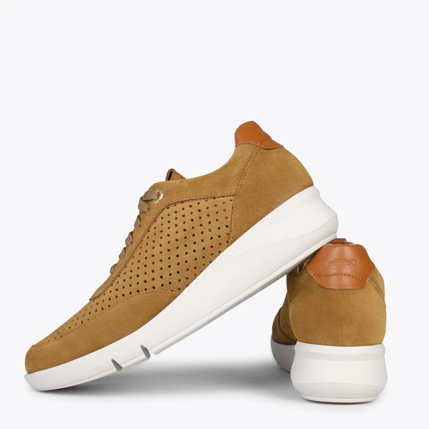 La semelle compensée intérieure est de 4cm offrant ainsi un plus d’hauteur tout en restant une chaussure basse. Semelle en cuir amovible qui intègre la technologie Memory Absorber Foam qui s’adapte à la forme du pied et augmente le confort.