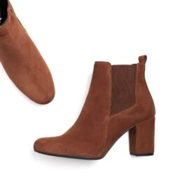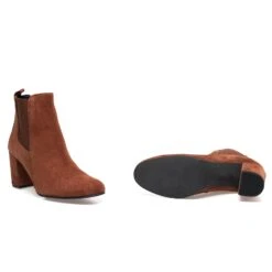 Le talon de ces bottines de femme en CUIR est de 7,5 cm de hauteur.  Le dessus est en cuir et la doublure est en textile. De plus, elles ont une semelle confort gel. La couleur de ces bottines est CUIR.