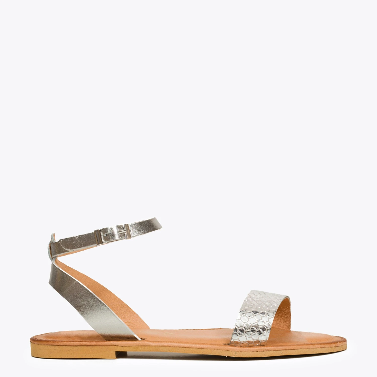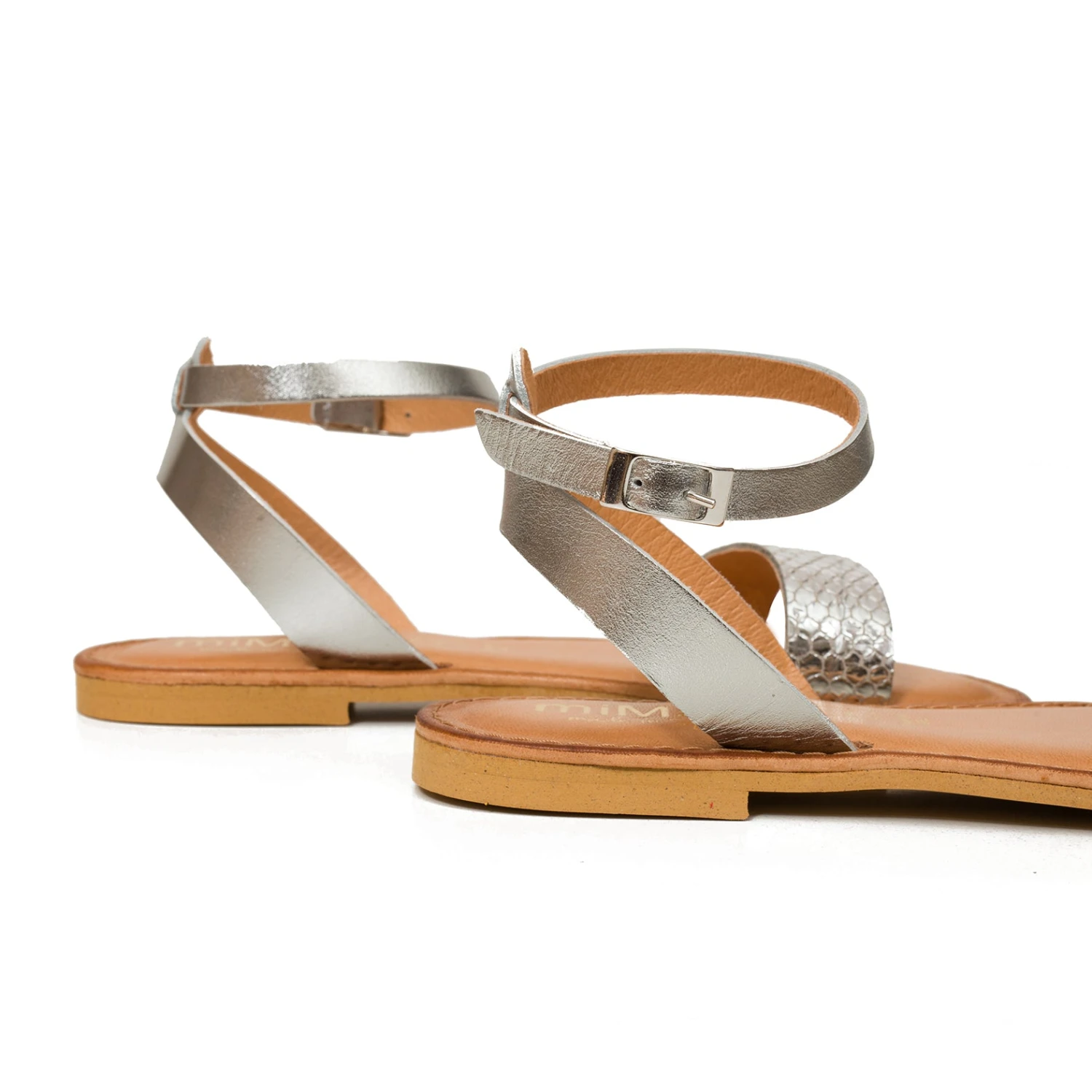 VOS SANDALES PLATES ARGENTĂ AVEC BRACELET SERONT VOS MEILLEURS PARTENAIRES CE PRINTEMPS-ĂTĂ 2019. COMBINEZ-LES AVEC VOS LOOKS PRĂFĂRĂS ET APPORTEZ UNE TOUCHE JOYEUSE AVEC CETTE TONALITĂ. PROFITEZ DU CONFORT DE CETTE CHAUSSURE MARQUE miMaO
