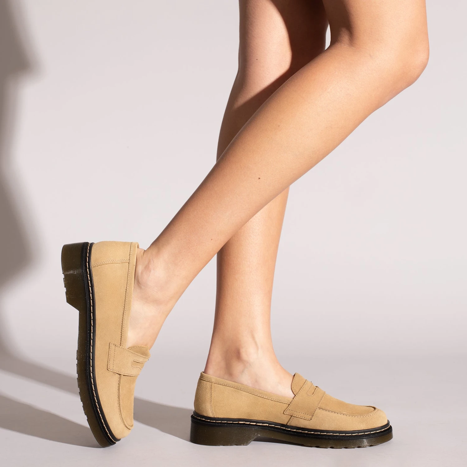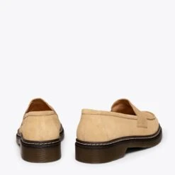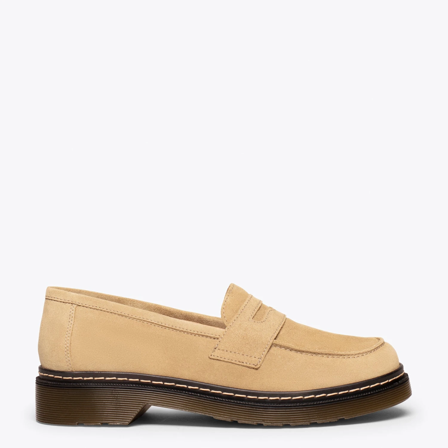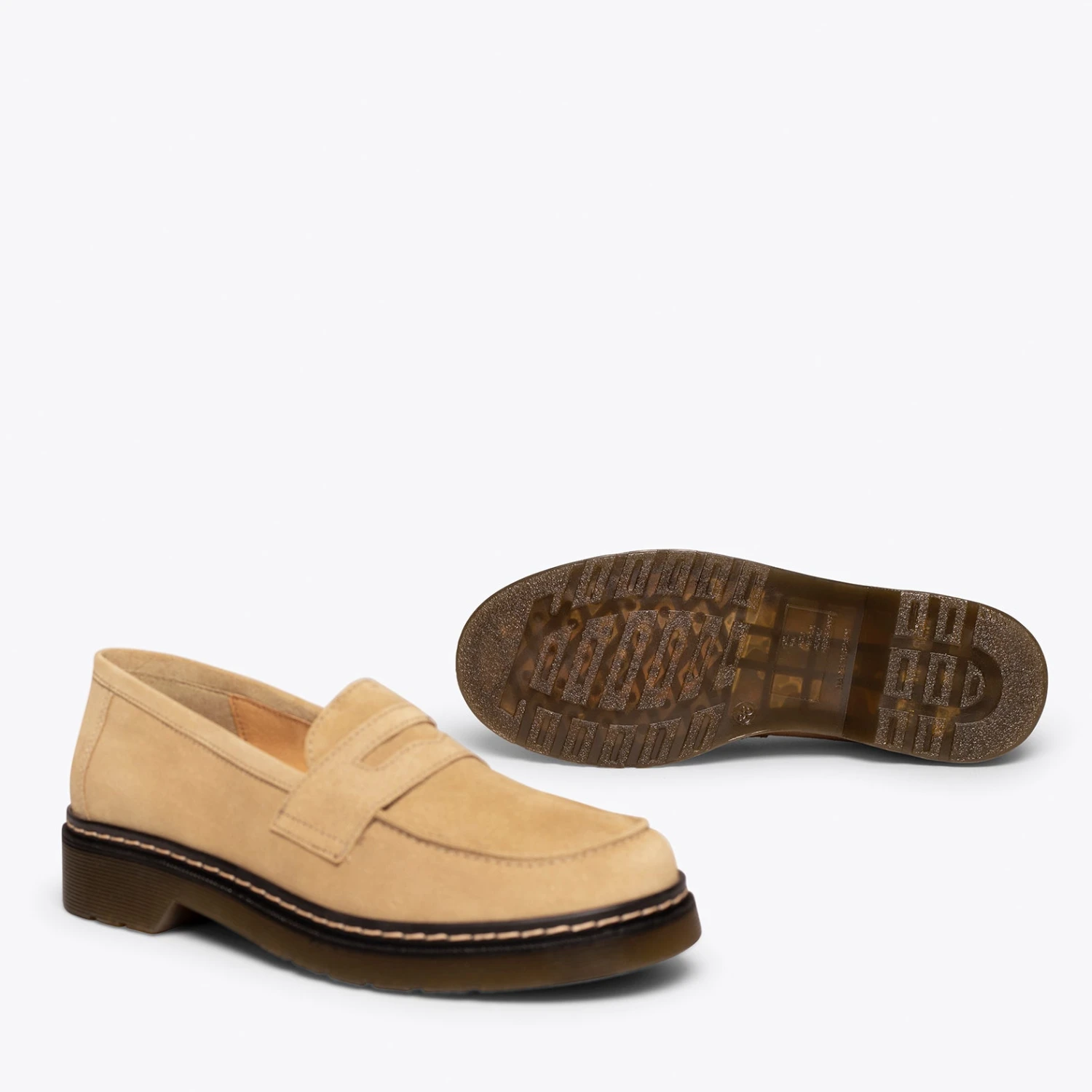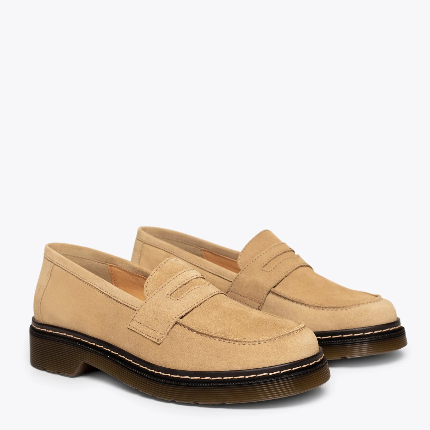 Mocassin en cuir nubuck BEIGE Chaussures avec talon de 3 cm et plateforme avant de 1 cm