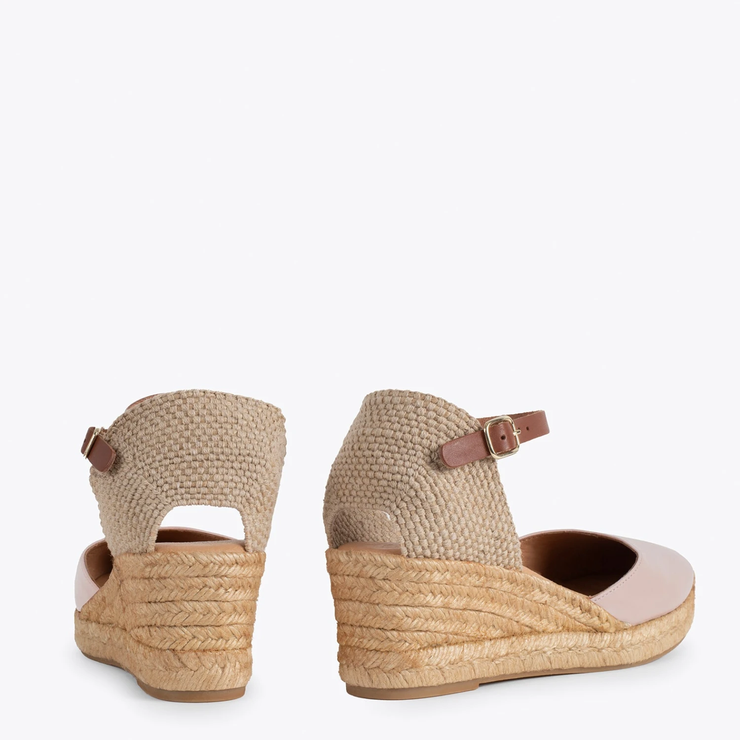Ces compensées ROSE PÂLE sont fabriquées en cuir nappa de haute qualité et le jute naturel du talon est de couleur grillé. Ces confortables sandales compensées vous accompagneront 24 heures sur 24 car grâce à la semelle intérieure en cuir Ultra Confort, elles vous apporteront tout le repos dont vous avez besoin à chaque pas.