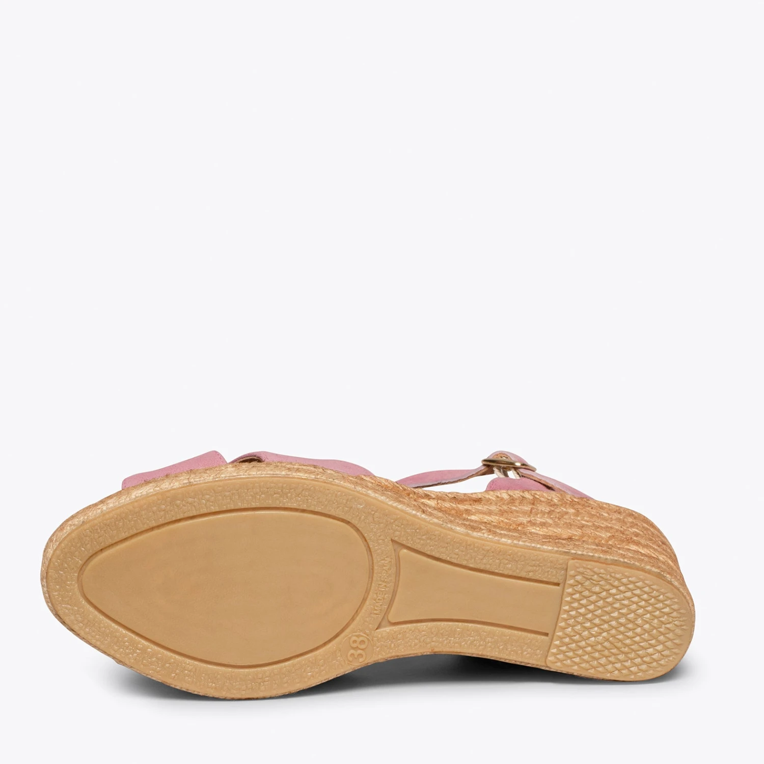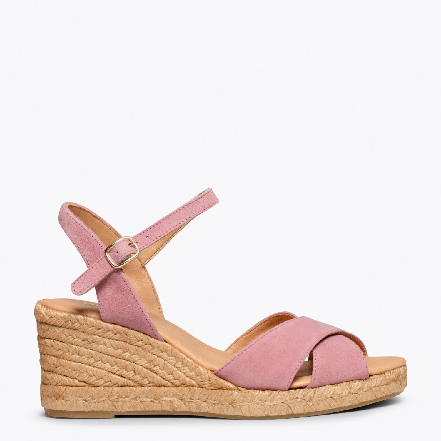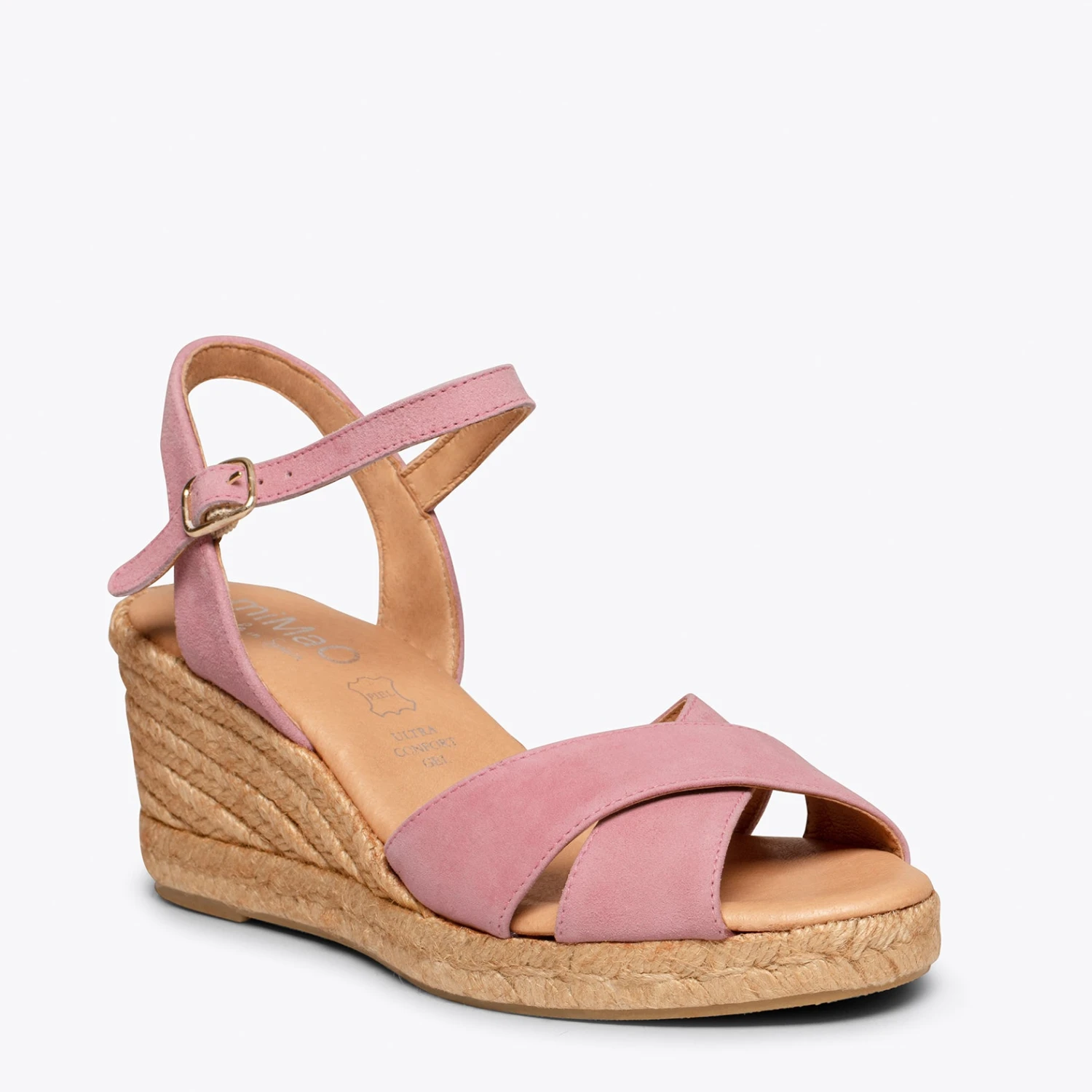Sandales en daim/nappa métallisé avec des lanières croisées et un bracelet à la cheville qui permet un ajustement parfait à votre pied. Ce sont de confortables espadrilles compensées qui intègrent la toute dernière technologie en matière de confort, la semelle intérieure en cuir Goutte Ultra Confort Gel, qui protège chaque pas, gardant votre pied reposé toute la journée.