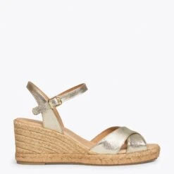 Elles sont dotées d’une semelle en cuir respirante Ultra Confort Gel avec goutte qui absorbe le poids de notre corps et augmente ainsi le confort et réduit les gênes au niveau de la voûte plantaire. Le design du compensé et du bracelet à la cheville offrent un très bon soutien du pied.