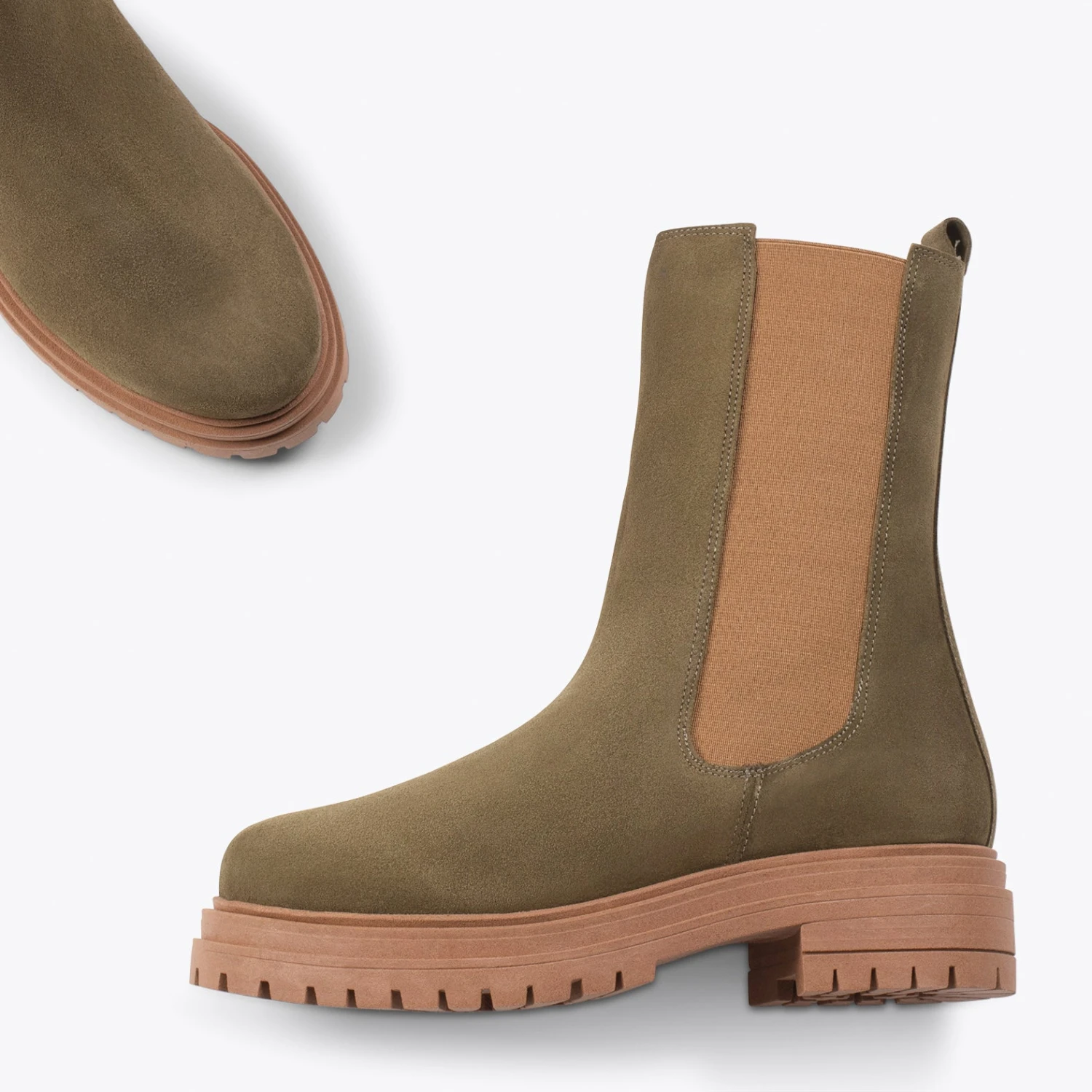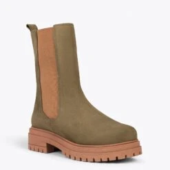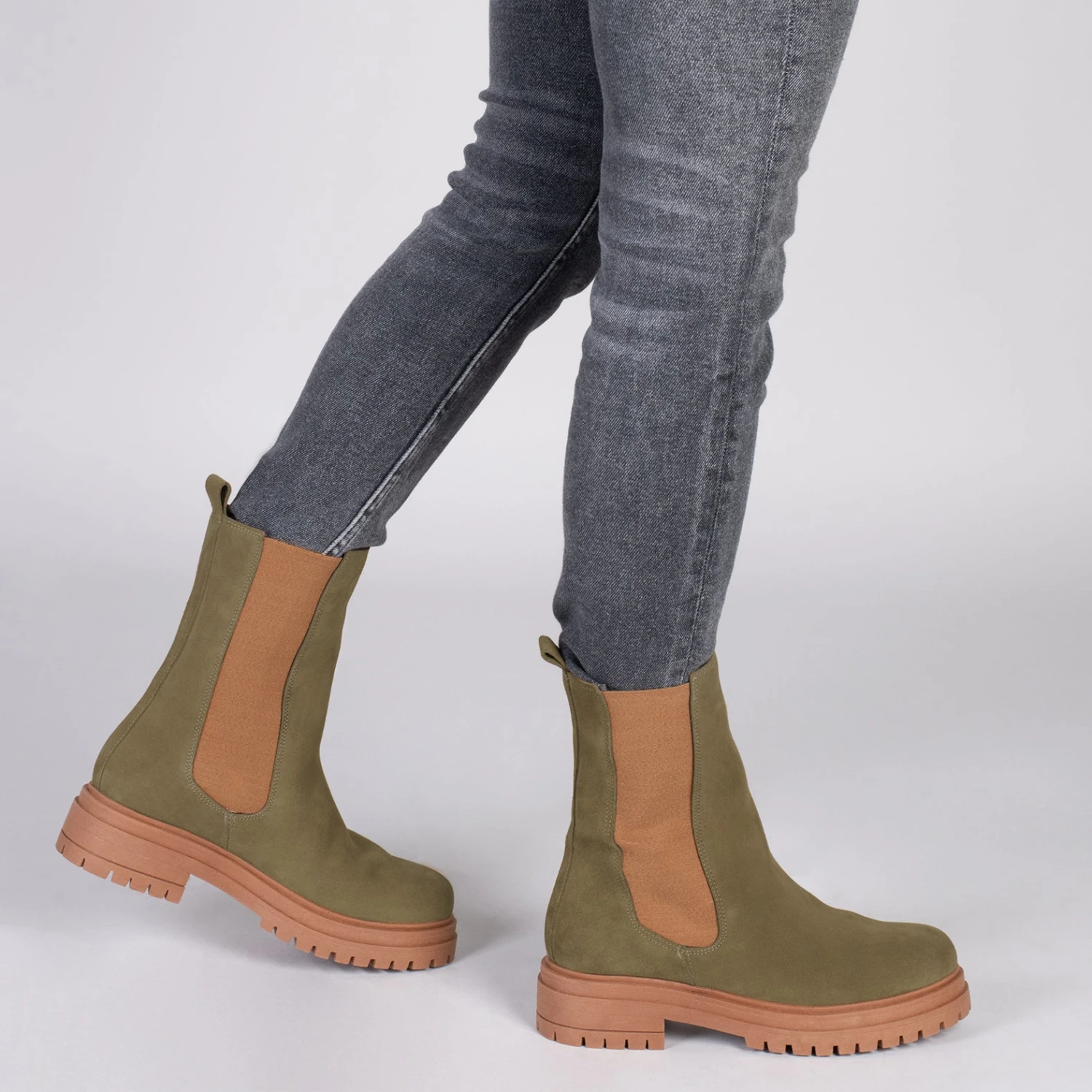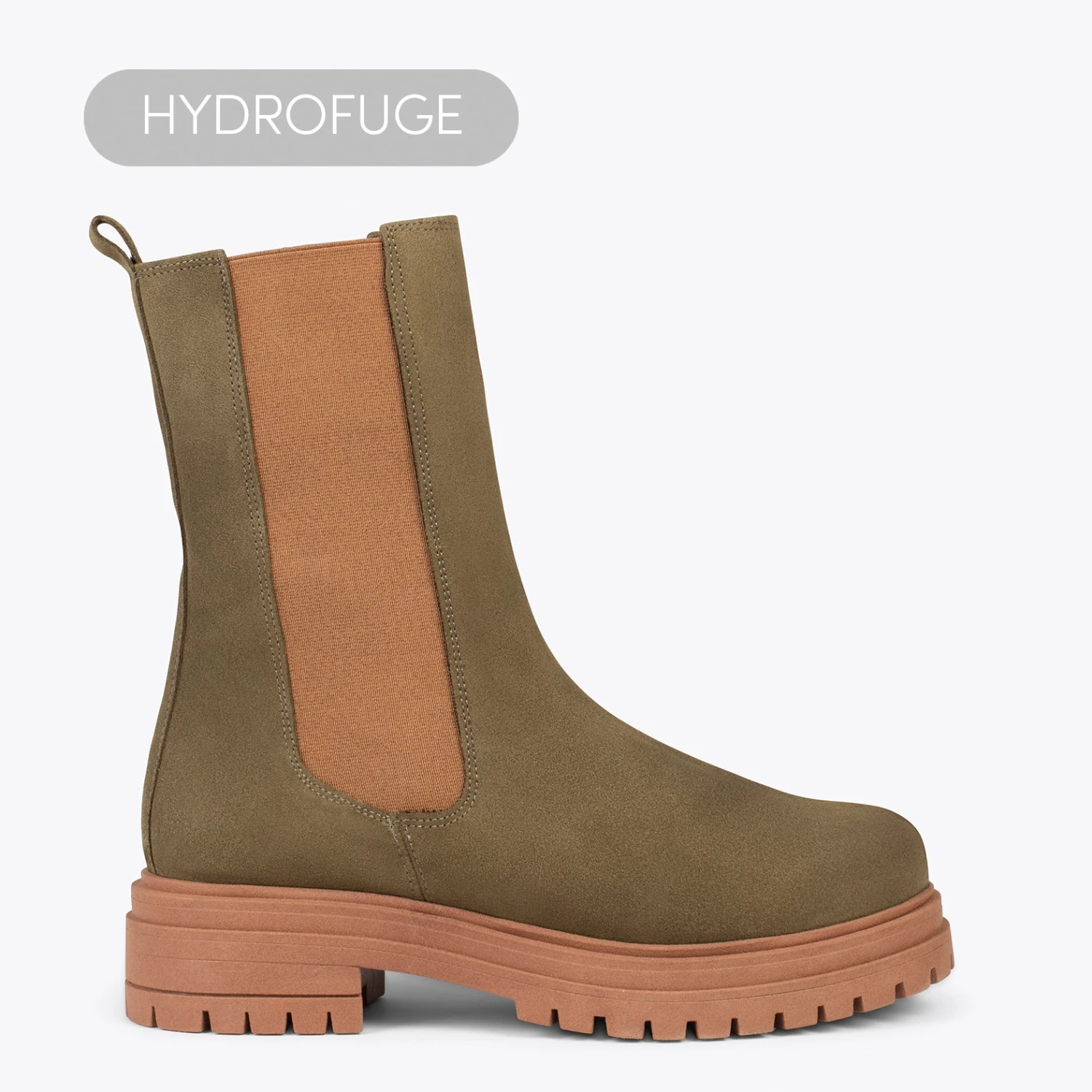 Bottines Chelsea VERT en cuir nubuck avec traitement hydrofuge