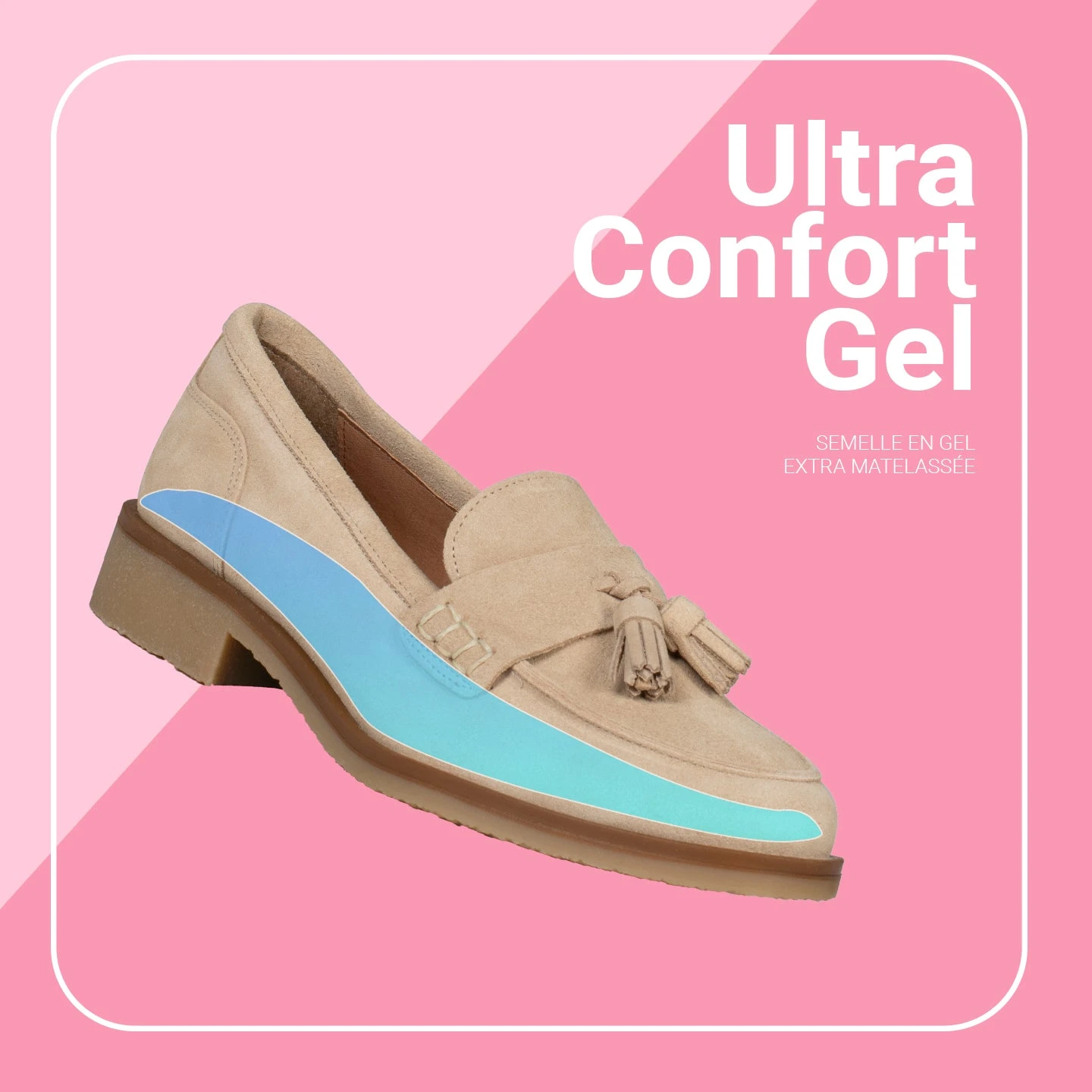 Technologie de Confort: semelle en Cuir Ultra Confort Gel, respirante