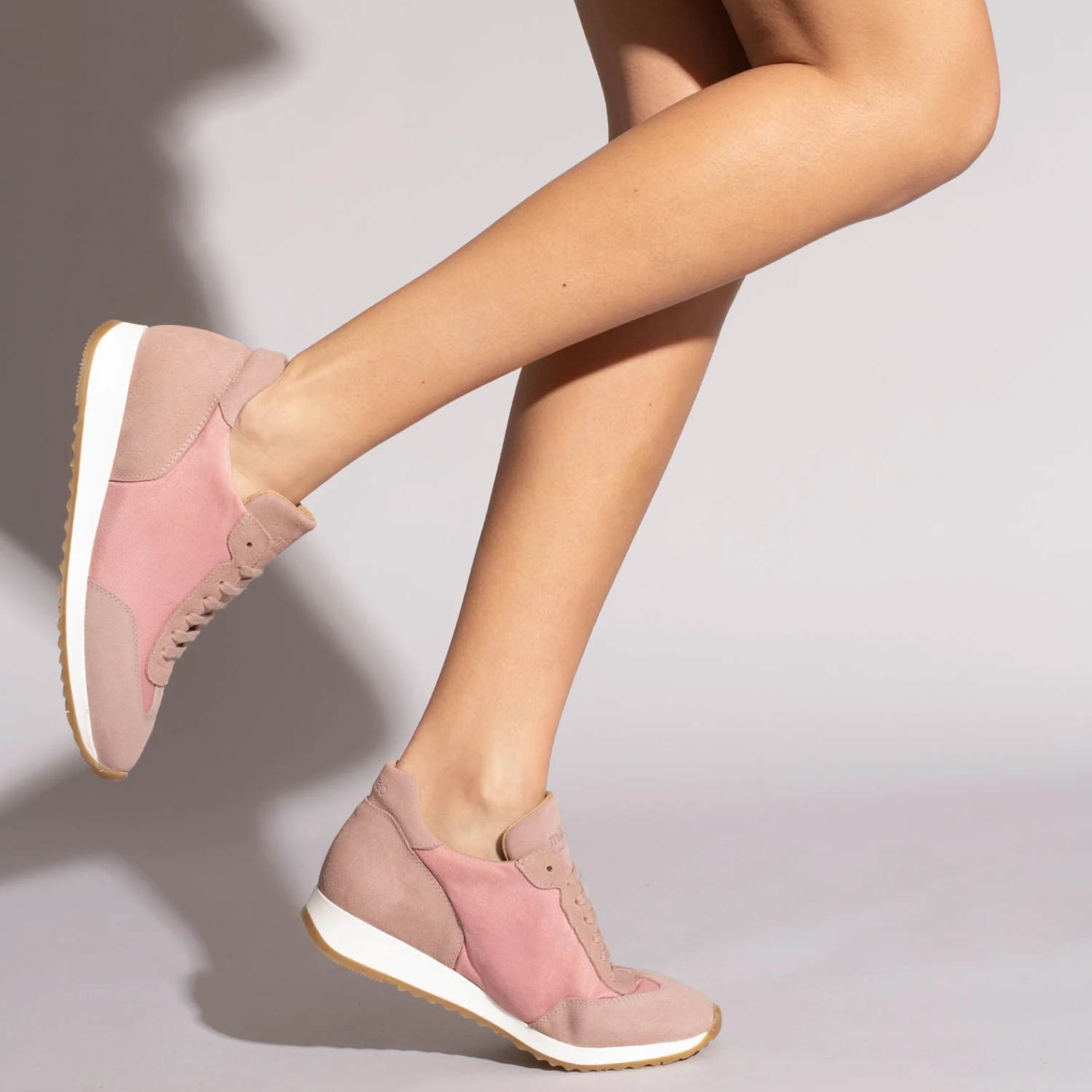 DĂ©couvrez ces baskets pour femme ROSE en cuir. Profitez de cette saison printemps Ă©tĂ© avec cette sneaker en nylon et optez pour un maximum de confort pour vos pieds. Grâce aux lacets, vous pouvez l’ajuster parfaitement Ă votre pied, et avec une semelle intĂ©rieure amovible Memory Absorber Foam et une semelle extĂ©rieure blanche un peu compensĂ©e, cette sneaker vous offrira un confort total.