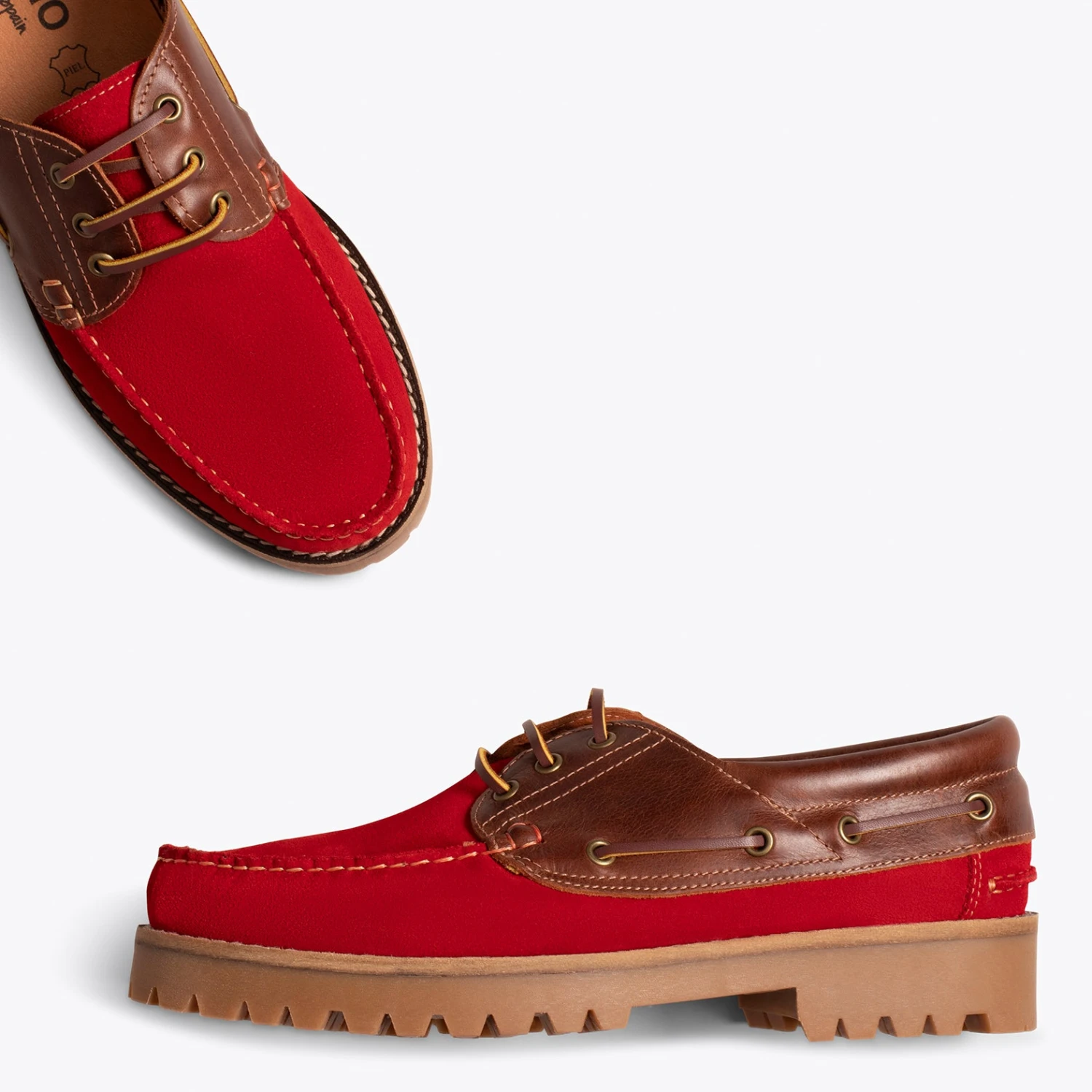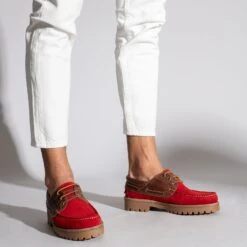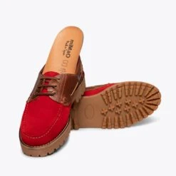 Nouvelle collection de chaussures homme Printemps-ÉtĂ©. Chaussures nautiques en cuir nubuck ROUGE hydrofuge, c’est-Ă -dire qu’elles repoussent l’eau; et cuir nappa en MARRON, c’est une combinaison parfaite pour vos looks d’Ă©tĂ©. Ces mocassins classiques pour homme ont la semelle intĂ©rieure amovible en cuir Ultra Confort Gel, amortissent vos pieds Ă chaque pas, et avec la semelle extĂ©rieure en caoutchouc, elles seront vos chaussures les plus confortables. Choisissez la qualitĂ© de ces chaussures en cuir Made in Spain, retrouvez-les dans votre magasin de chaussures miMaO.
