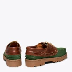 Nouvelle collection de chaussures homme Printemps-ÉtĂ©. Chaussures nautiques en cuir nubuck VERT hydrofuge, c’est-Ă -dire qu’elles repoussent l’eau; et cuir nappa en MARRON, c’est une combinaison parfaite pour vos looks d’Ă©tĂ©. Ces mocassins classiques pour homme ont la semelle intĂ©rieure amovible en cuir Ultra Confort Gel, amortissent vos pieds Ă chaque pas, et avec la semelle extĂ©rieure en caoutchouc, elles seront vos chaussures les plus confortables. Choisissez la qualitĂ© de ces chaussures en cuir Made in Spain, retrouvez-les dans votre magasin de chaussures miMaO.