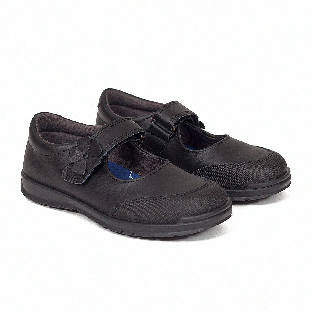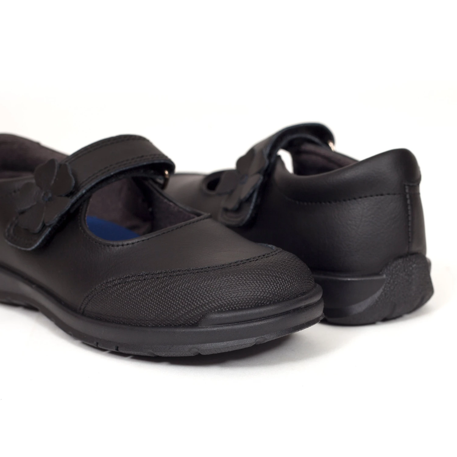 Chaussures En Cuir Fille Avec Fleur Noir Memory Absorber Foam