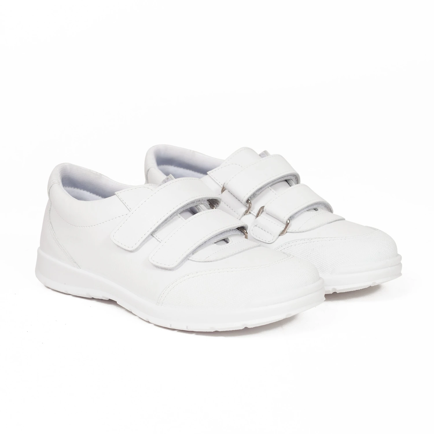 Chaussures Enfants « uniforme » En Cuir Lavable Memory Absorber Foam Blanc