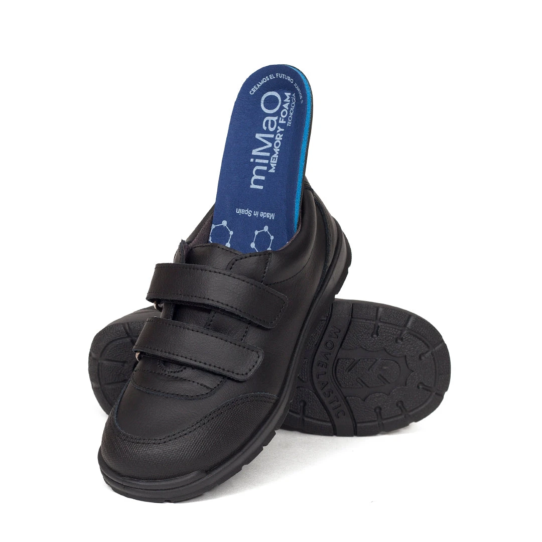 Chaussures Enfants « uniforme » En Cuir Lavable Memory Absorber Foam Noir