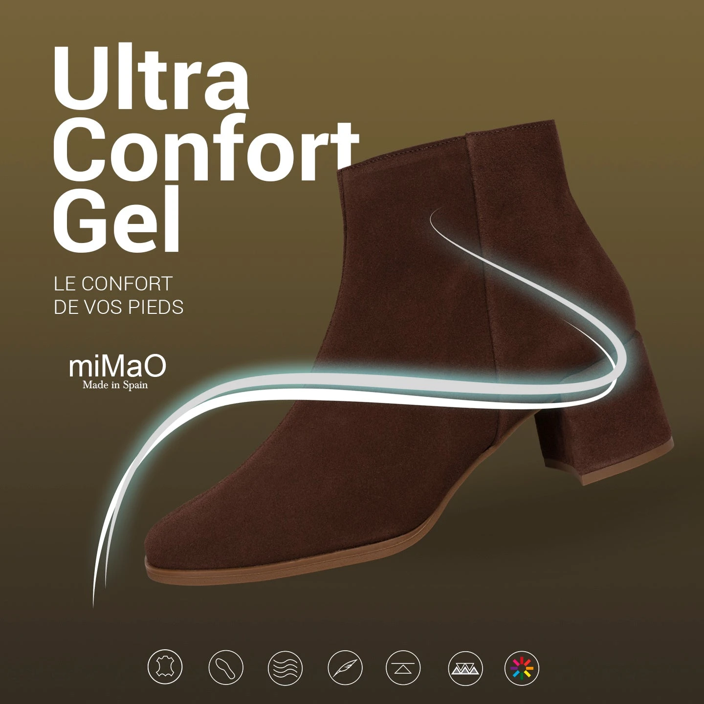 Des bottines confortables avec un talon large, qui, avec la semelle intérieure en cuir Ultra Confort Gel, vous donneront tout ce dont vous avez besoin pour marcher sans remarquer que vous les portez.