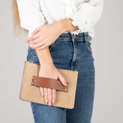 CLASSIC – Pochette Ă  Double Compartiment Pour Femme SABLE