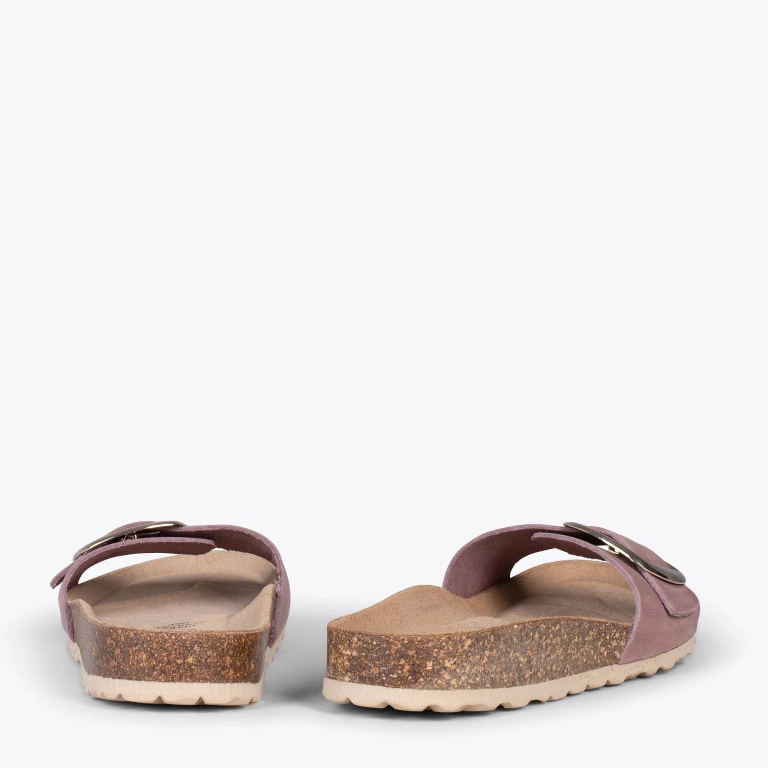 Leur boucle dorĂ©e offre un grand contraste avec la couleur MAUVE de la tige. La semelle en EVA, d’une hauteur de 2,5 cm, est un atout supplĂ©mentaire. DĂ©couvrez le confort Ă vos pieds cet Ă©tĂ© 2023!