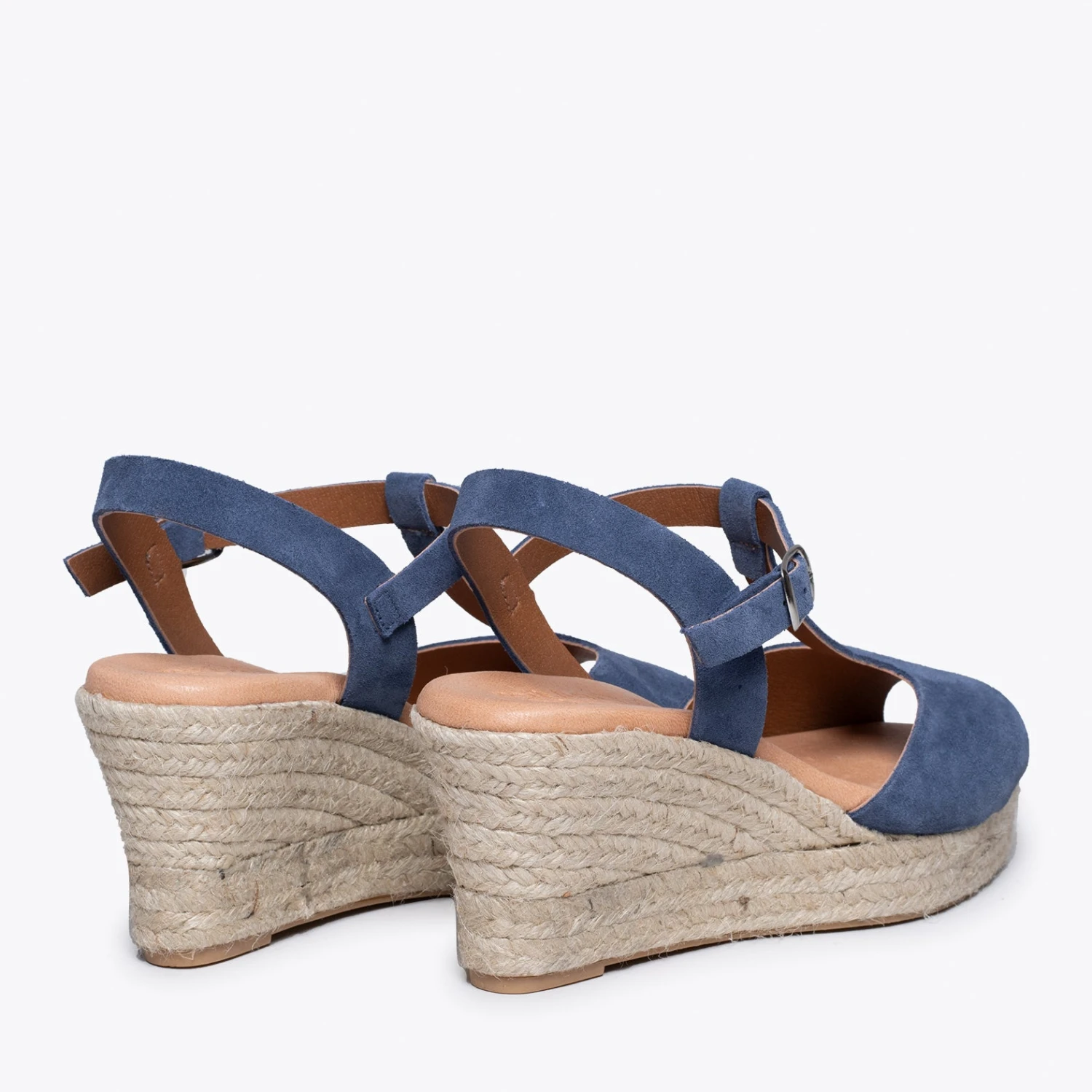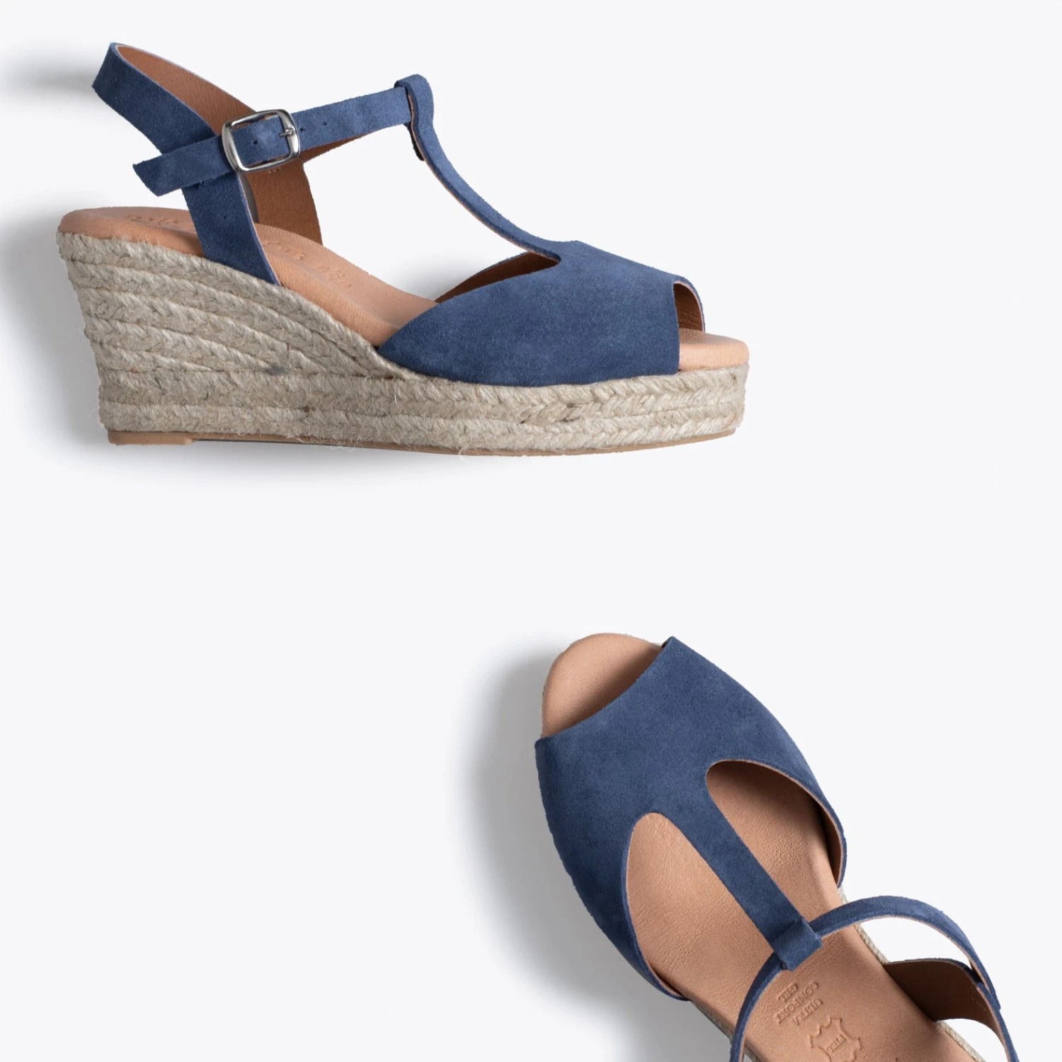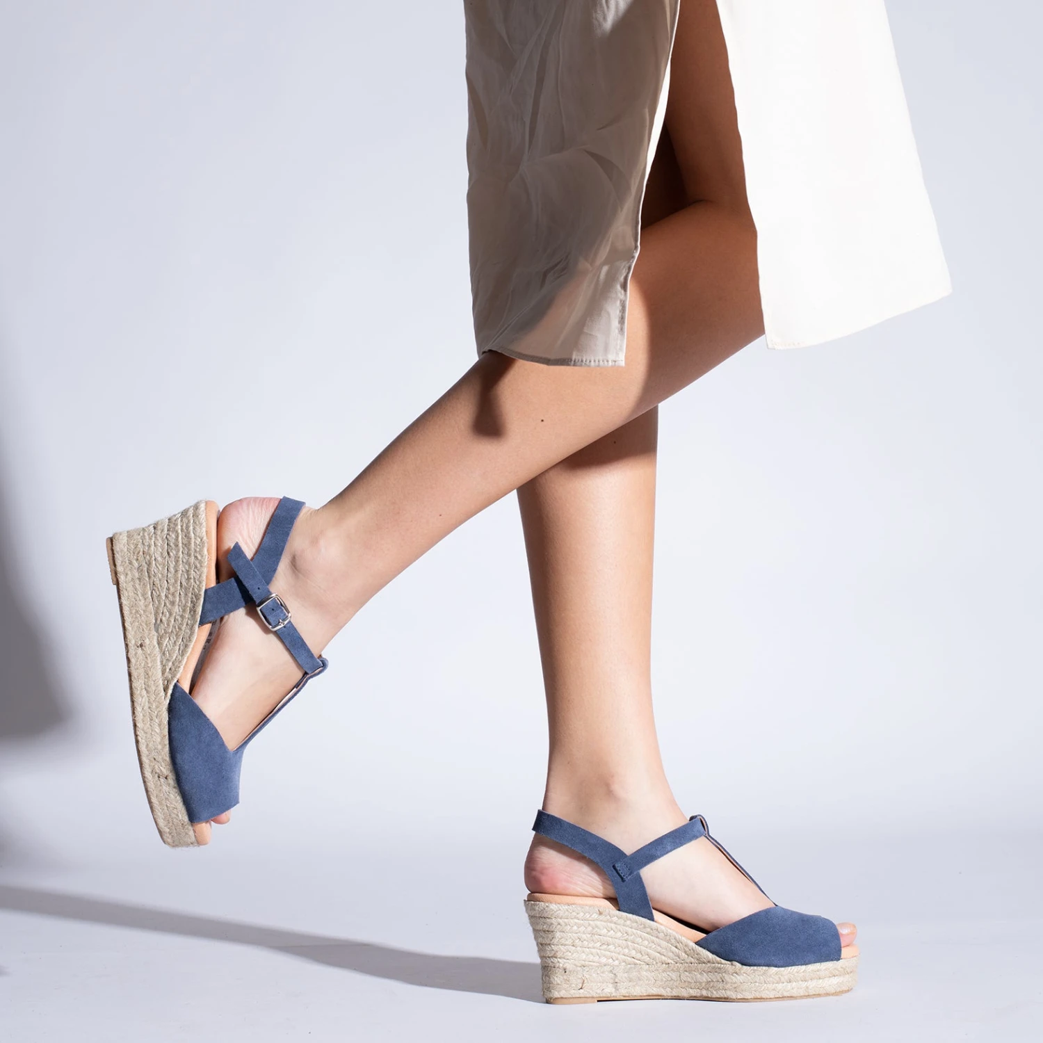 Sandale espadrille pour femme avec lanière Ă l’avant et fermeture Ă boucle Ă la cheville. Le bout de cette espadrille est ouvert, vous pouvez donc la combiner avec tous les vernis de vos ongles. Cette chaussure espadrille est entièrement artisanale et possède une technologie de confort avec la semelle intĂ©rieure en gel ultra confort, de sorte que vous aurez la sensation de marcher sur des nuages. De plus, grâce Ă sa semelle extĂ©rieure antidĂ©rapante, le confort sera plus important. Profitez de cette chaussure en cuir nubuck BLEU et combinez-la avec vos looks de cette saison printemps Ă©tĂ© 2020.
