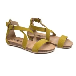 SANDALE BIO A BRIDES POUR FEMME JAUNE AVEC TALON DE 2 CM, AVEC FERMETURE BRACELET ET BOUCLE. SANDALES JAUNE CONFORTABLES EN CUIR NUBUCK AVEC SEMELLE EN CUIR CONFORT GEL. PROFITEZ DE LA QUALITÉ DE CETTE CHAUSSURE FABRIQUÉE EN ESPAGNE. DEMANDEZ VOS SANDALES EN LIGNE ET RECEVEZ-LES SOUS 2 A 4 JOURS OUVRABLES.
