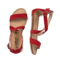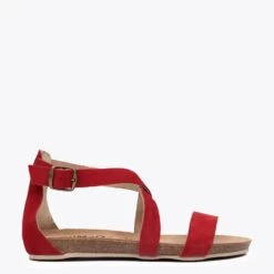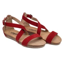 SANDALE BIO A BRIDES POUR FEMME ROUGE AVEC TALON DE 2 CM, AVEC FERMETURE BRACELET ET BOUCLE. SANDALES ROUGE CONFORTABLES EN CUIR NUBUCK AVEC SEMELLE EN CUIR CONFORT GEL. PROFITEZ DE LA QUALITÉ DE CETTE CHAUSSURE FABRIQUÉE EN ESPAGNE. DEMANDEZ VOS SANDALES EN LIGNE ET RECEVEZ-LES SOUS 2 A 4 JOURS OUVRABLES.