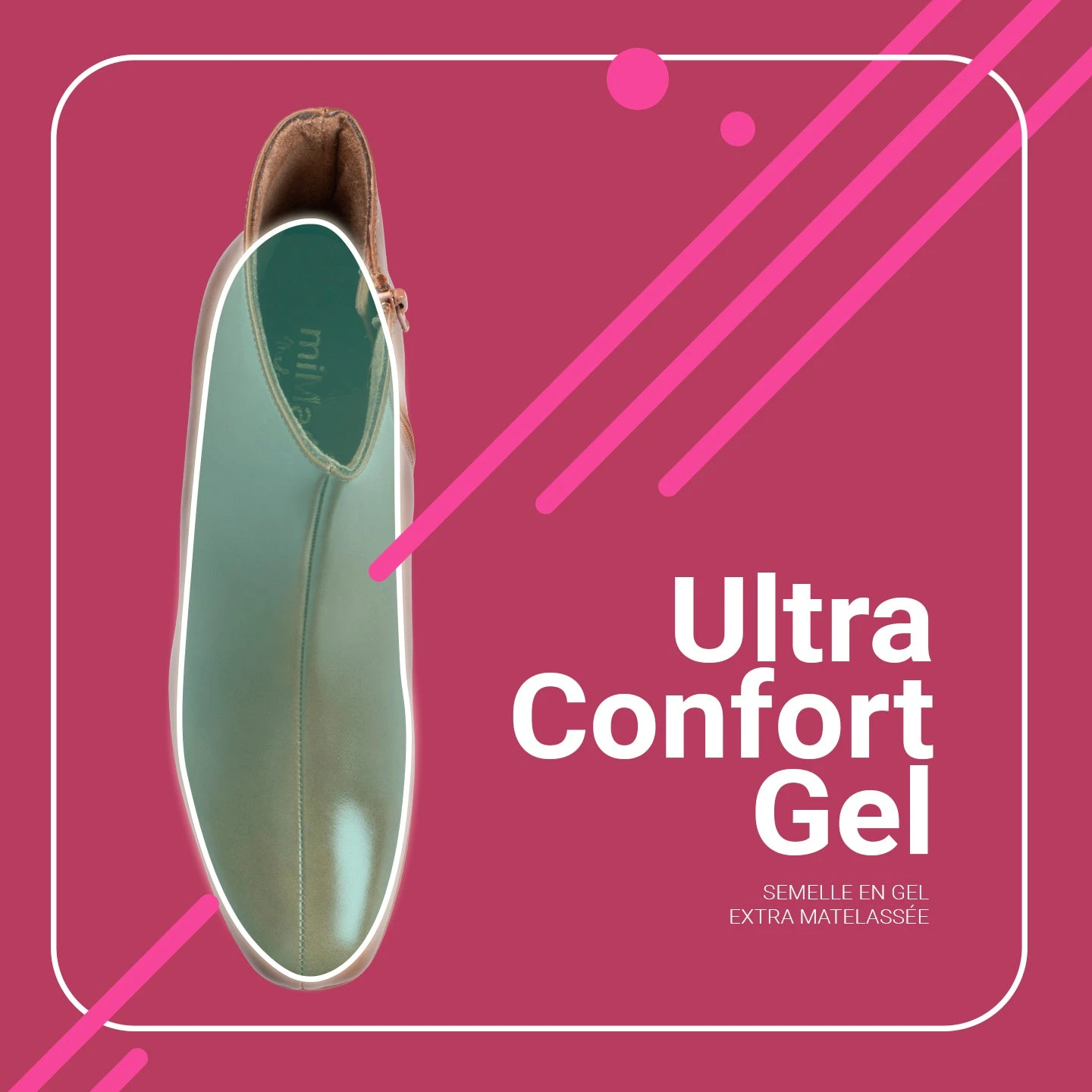 Technologie de Confort: semelle en Cuir Goutte Ultra Confort Gel transpirable