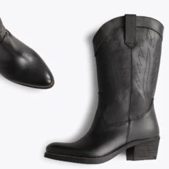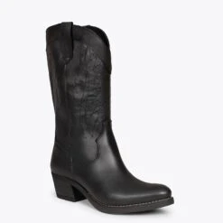 Bottes de cow-boy pour femme en cuir nappa NOIR