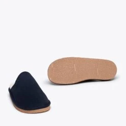 Avec cette pantoufle BLEU MARINE, vous aurez la sensation d’ĂŞtre dans les nuages. Grâce Ă sa semelle intĂ©rieure ultra-confort gel, vous marcherez dans un confort total, et sa doublure en laine gardera vos pieds toujours au chaud. Et si en vous lavant les mains, une goutte d’eau vous tombe dessus, ne vous en faites pas. C’est une pantoufle en cuir hydrofuge, donc l’eau glissera. Et comme sa semelle extĂ©rieure ne s’use pas, elle durera plusieurs saisons de suite! Et, qui ne veut pas se sentir complètement Ă l’aise chez soi?Â