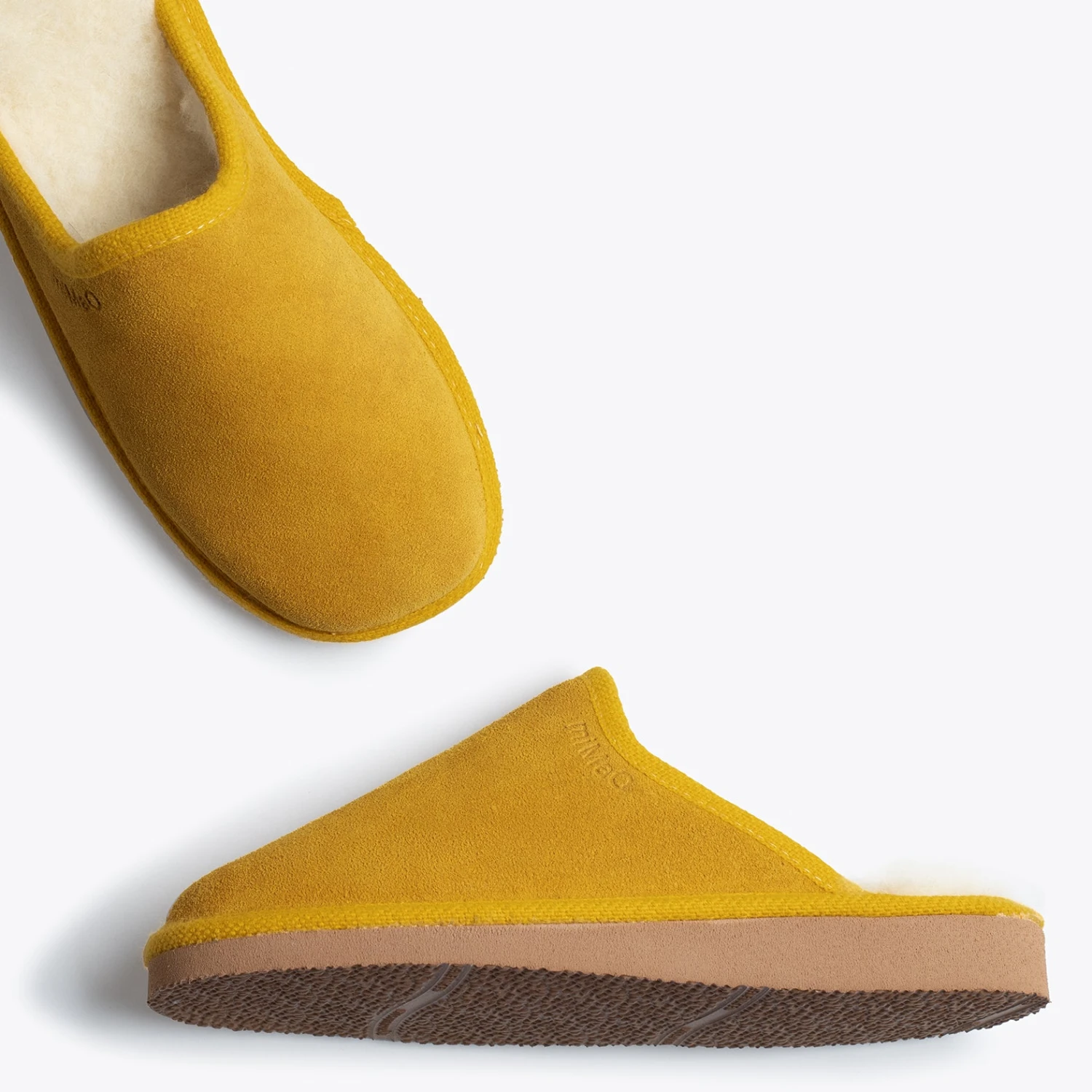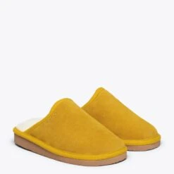 Avec cette pantoufle MOUTARDE, vous aurez la sensation d’ĂŞtre dans les nuages. Grâce Ă sa semelle intĂ©rieure ultra-confort gel, vous marcherez dans un confort total, et sa doublure en laine gardera vos pieds toujours au chaud. Et si en vous lavant les mains, une goutte d’eau vous tombe dessus, ne vous en faites pas. C’est une pantoufle en cuir hydrofuge, donc l’eau glissera. Et comme sa semelle extĂ©rieure ne s’use pas, elle durera plusieurs saisons de suite! Et, qui ne veut pas se sentir complètement Ă l’aise chez soi?Â