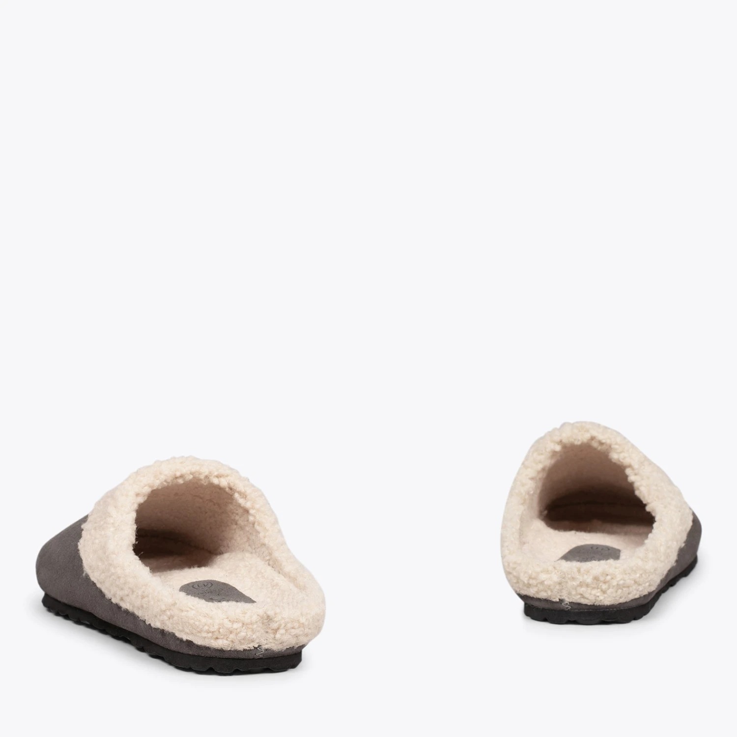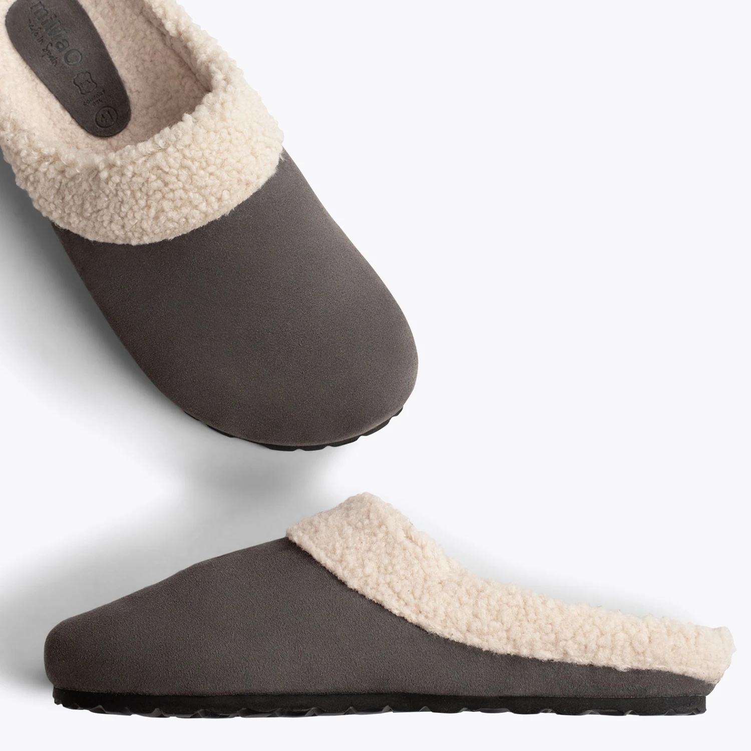 Pantoufles pour homme en cuir nubuck hydrofuge GRIS