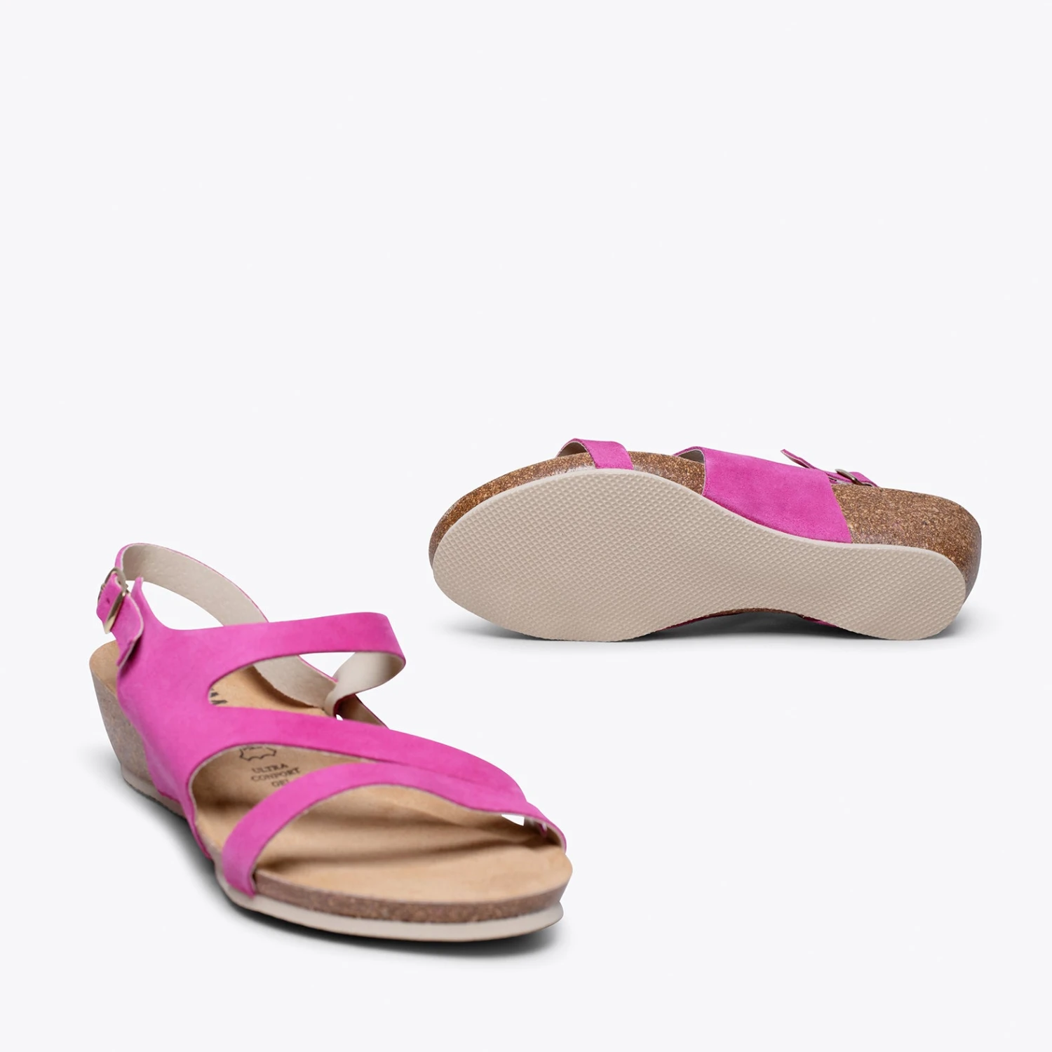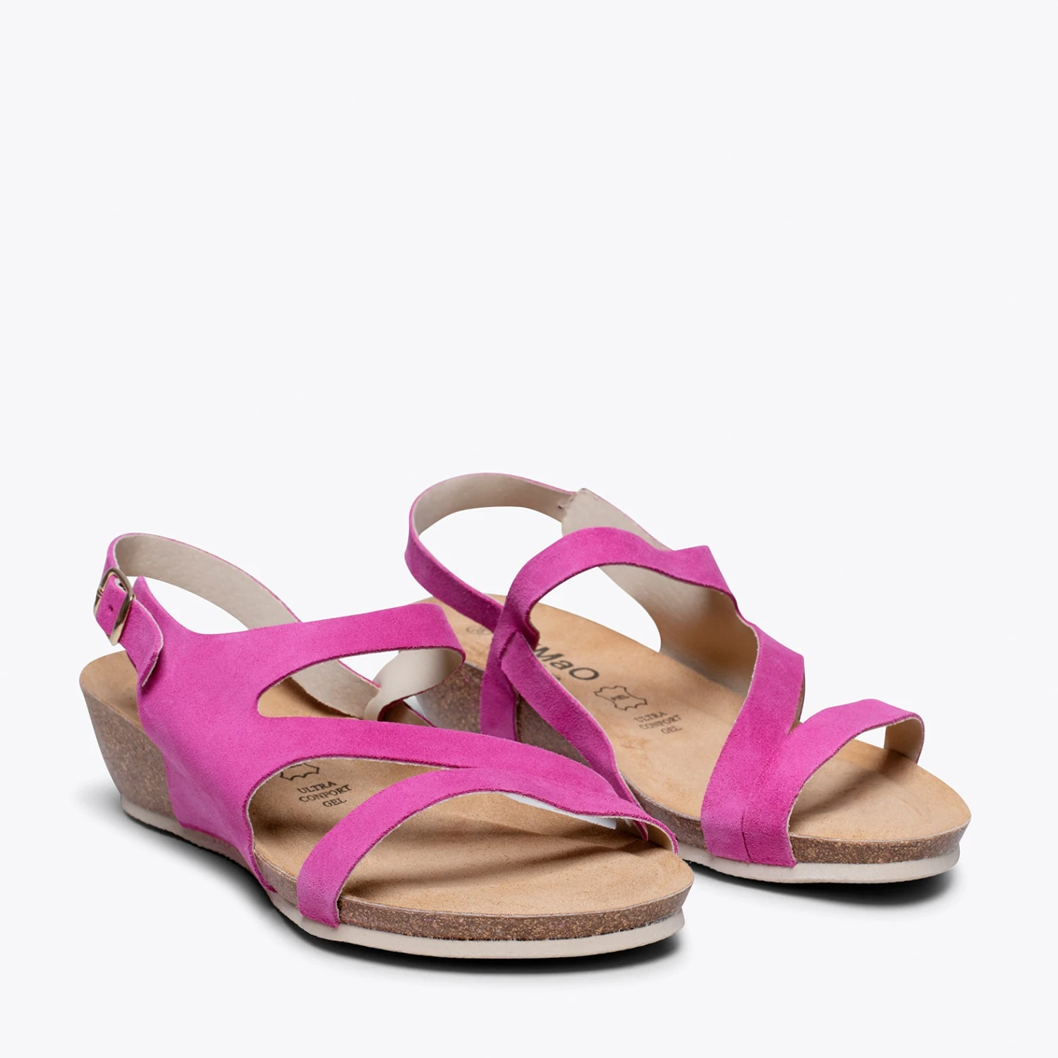 Cette sandale compensĂ©e BIO FUCHSIA sera votre meilleur alliĂ©e pour cette saison printemps Ă©tĂ© 2020. Ces sandales plates FUCHSIA, fabriquĂ©es en Espagne, sont en cuir nubuck. Son design avec lanières ne se dĂ©modera jamais, vous pourrez les porter longtemps. De plus, la position de ses sangles garantit un ajustement parfait et, avec la fermeture Ă boucle Ă la cheville , vous pouvez l’ajuster parfaitement.