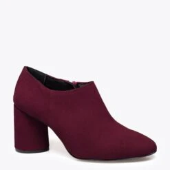 Chaussure montante BORDEAUX pour femme Ă talon arrondi de 7 cm de large, fermeture Ă glissière et bout arrondi. Chaussures montantes BORDEAUX confortables en nubuck avec semelle intĂ©rieure en gel et semelle extĂ©rieure antidĂ©rapante. Profitez de la qualitĂ© des chaussures fabriquĂ©es en Espagne. Choisissez vos chaussures confortables en ligne et combinez mode et confort sur vos pieds.                                                      Â