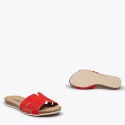 Ces sandales ROUGE deviendront les préférées de votre armoire cette saison printemps été 2021. Cette tong est fabriquée en cuir nubuck avec un design qui stylisera votre pied.