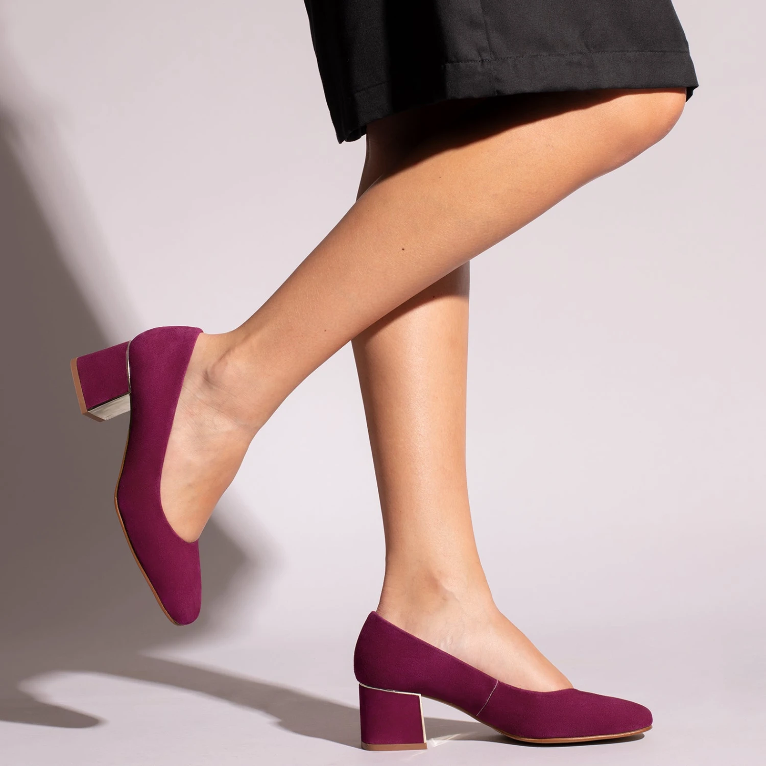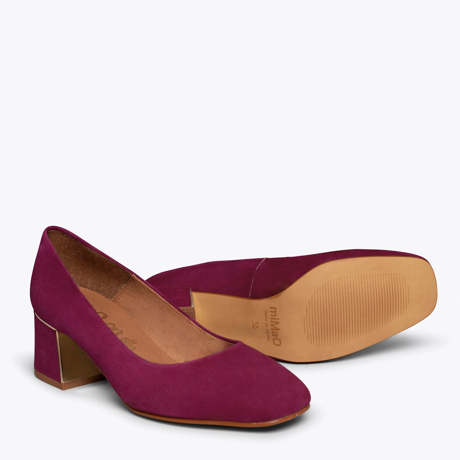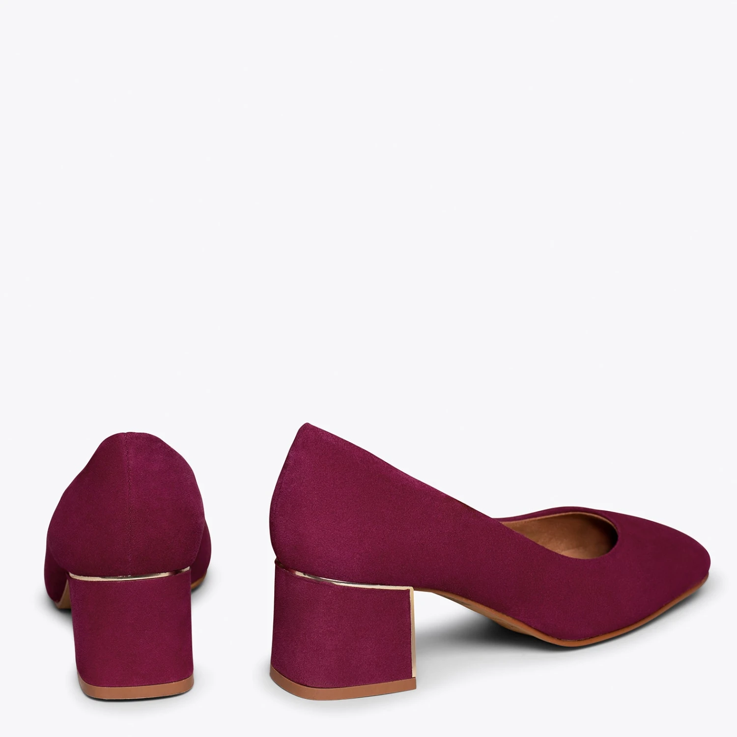 moyen d’automne-hiver 21-22 pour femme. Chaussures VIN en cuir daim avec bout carrĂ© et ornement mĂ©tallique sur le talon. Ce sont des escarpins confortables d’une hauteur moyenne de 5,5 cm qui intĂšgrent Ă©galement la toute derniĂšre technologie en matiĂšre de confort, la semelle intĂ©rieure en cuir Ultra Confort Gel 2.0 avec Goutte intĂ©grĂ©e, qui protĂšge la zone mĂ©tatarsienne: plus amortie, plus de confort.