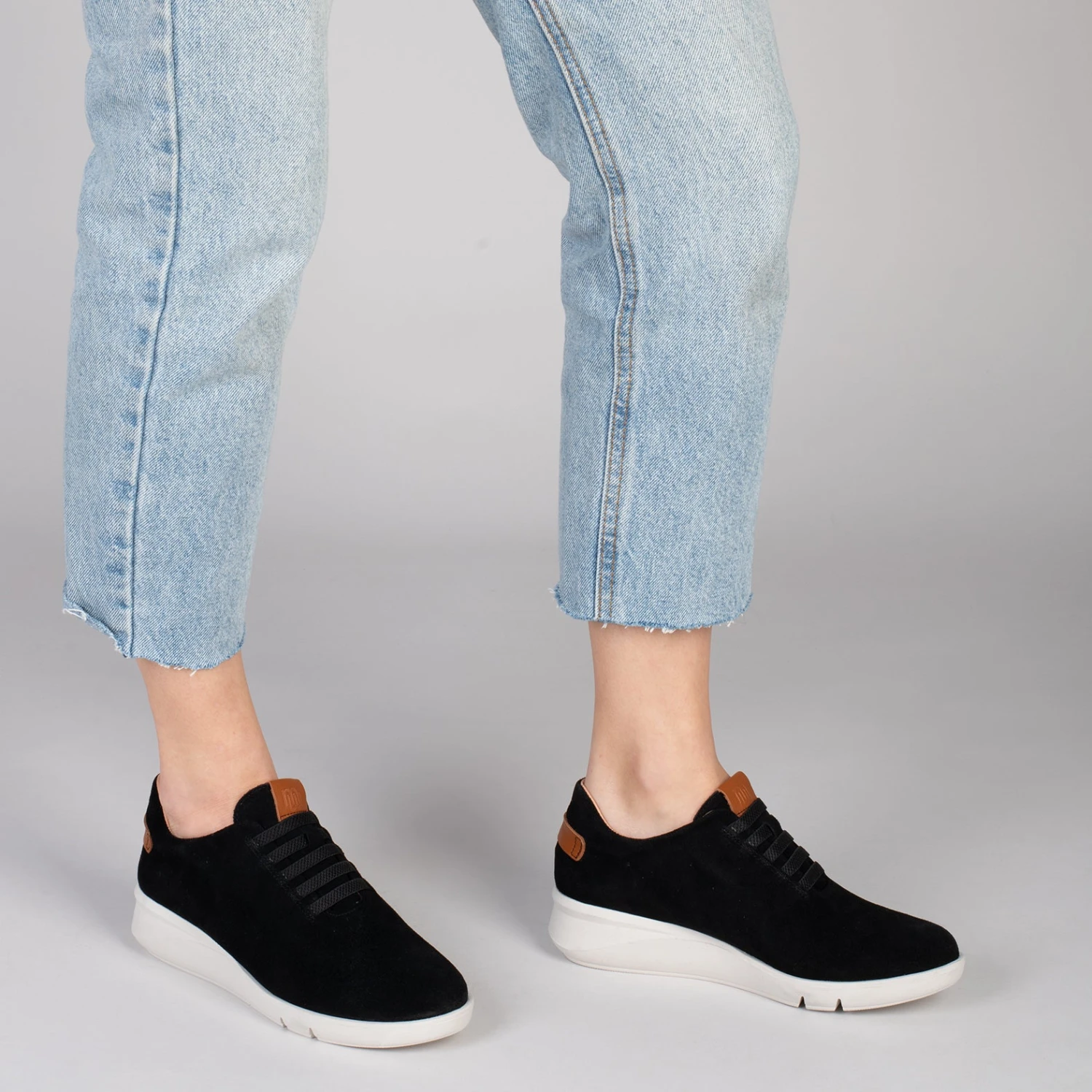 Semelle intérieure compensée en cuir qui intègre la technologie Memory Absorber Foam pour s’adapter parfaitement à la forme du pied. Ajoutée au compensé et plateforme de la semelle extérieure, ces chaussures nous apportent un peu plus de hauteur. La semelle est amovible, pouvant la remplacer facilement par une semelle orthopédique.